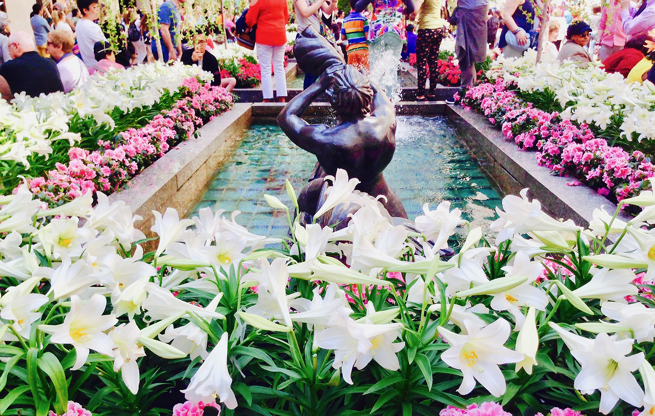 라커 펠러 센터 채널 가든은 백합 향기 가득하고