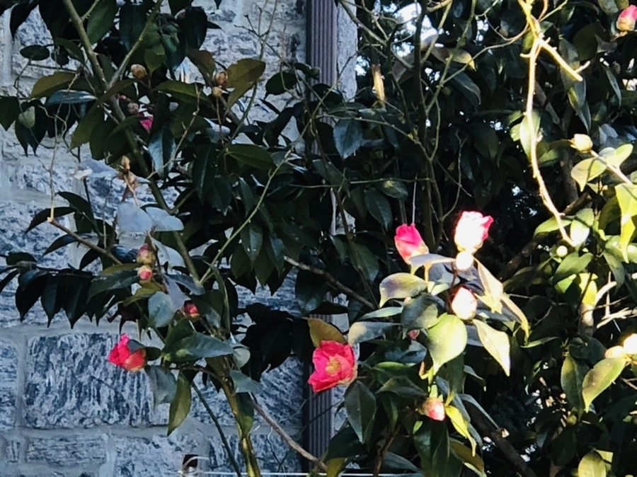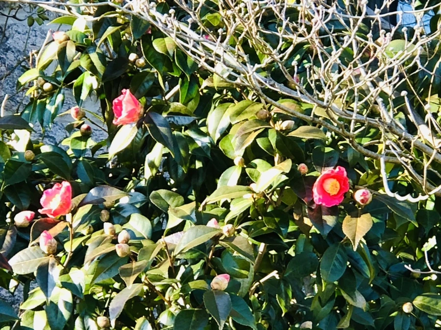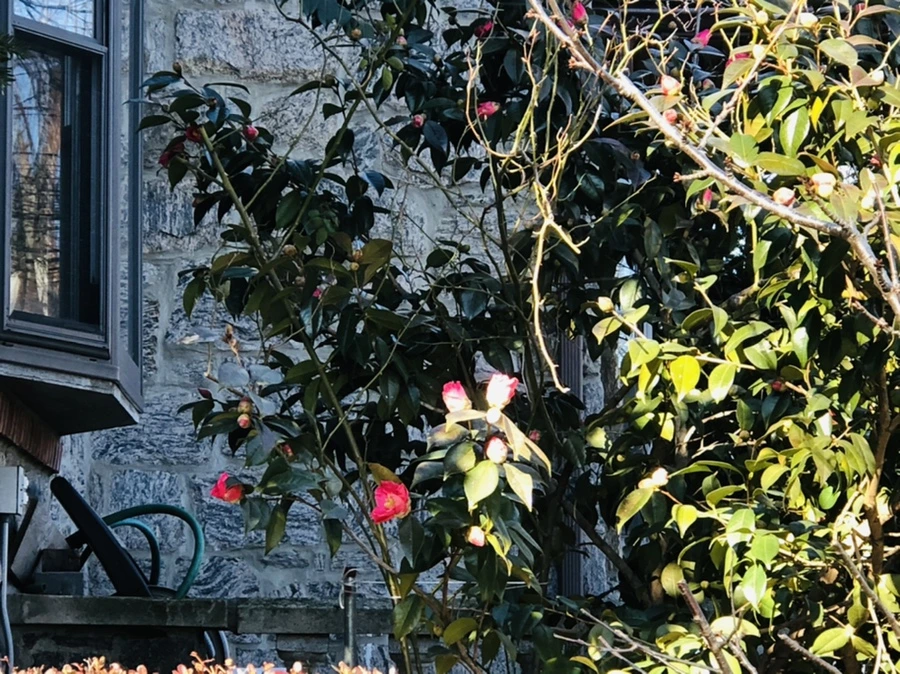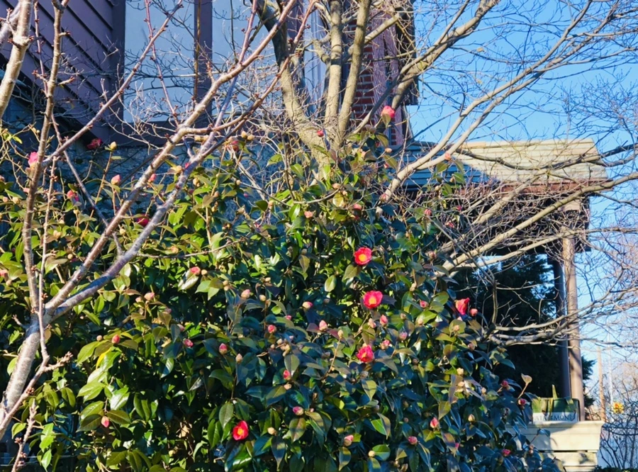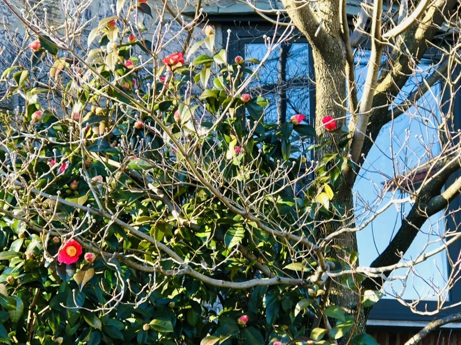 이웃집 정원에 핀 동백꽃이