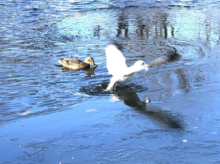 뉴욕 플러싱 공원 겨울 호수