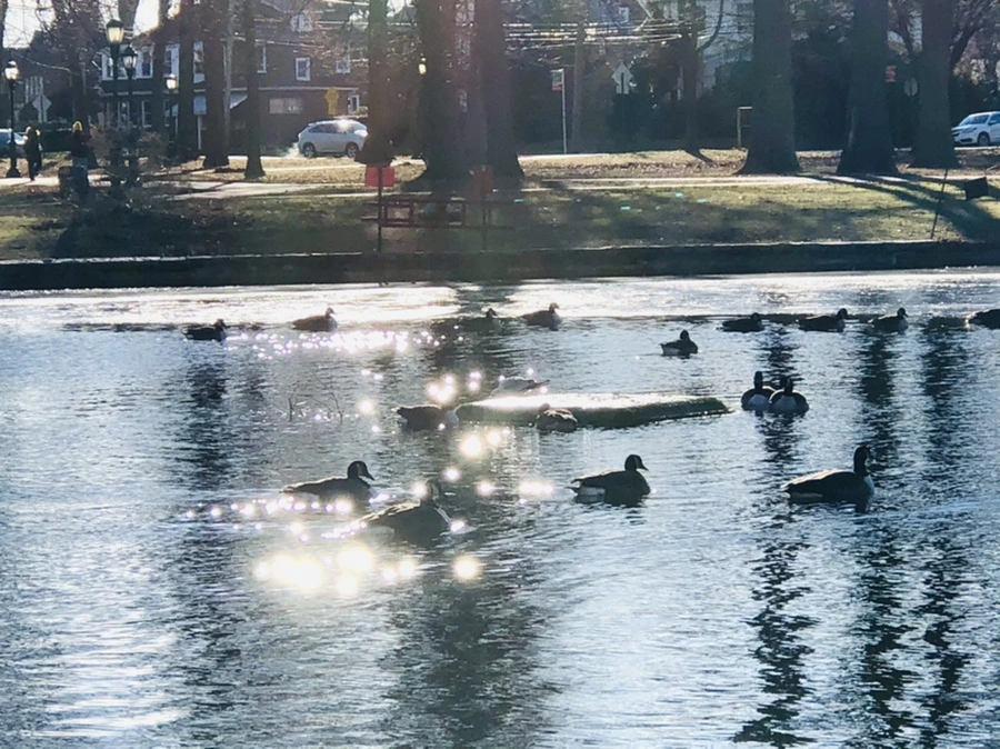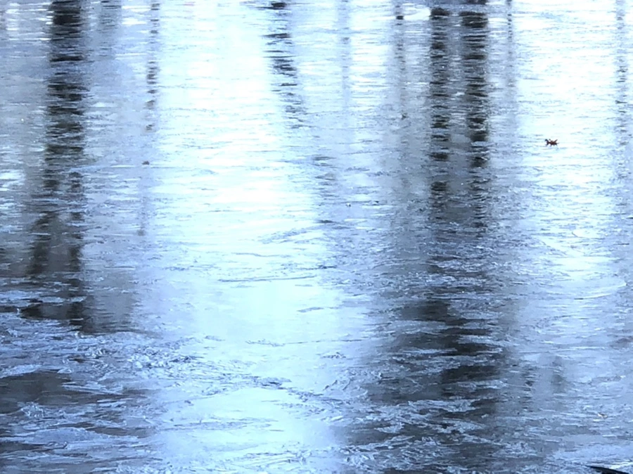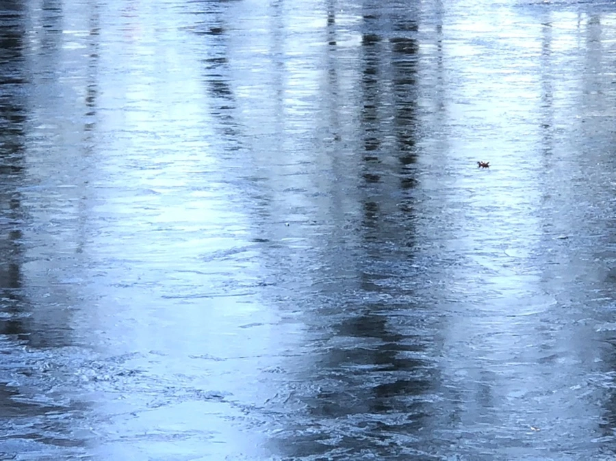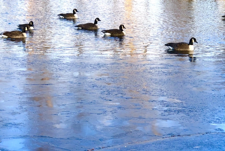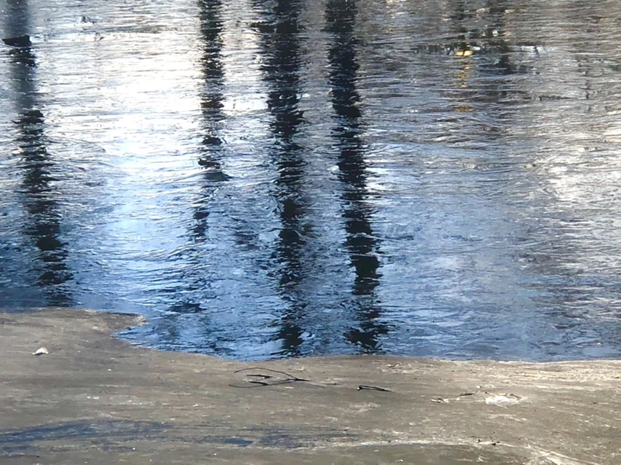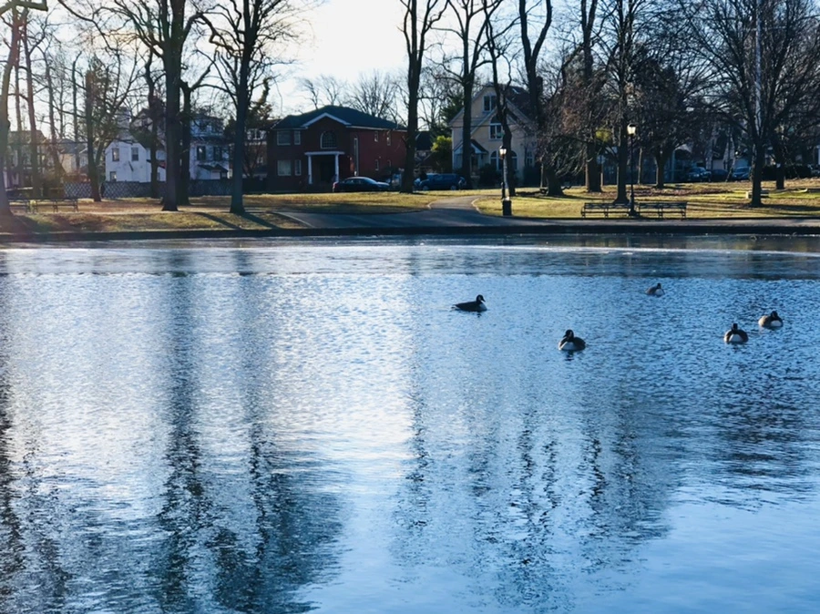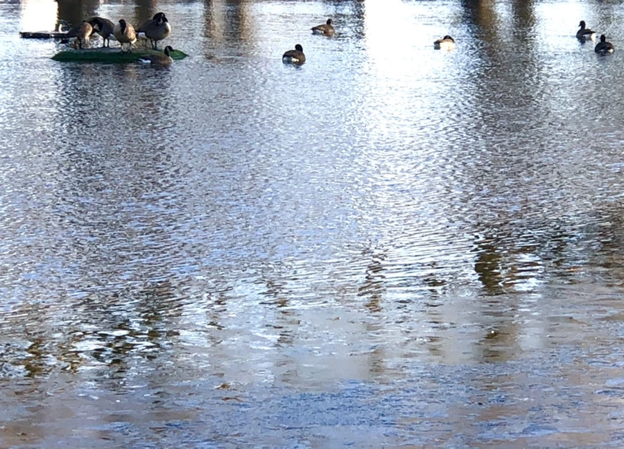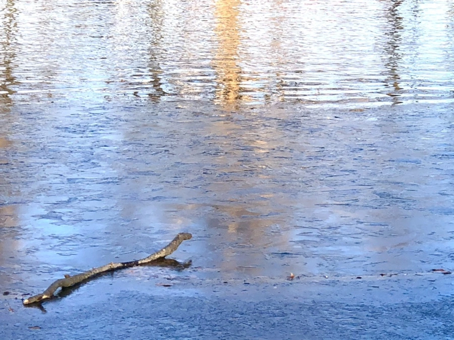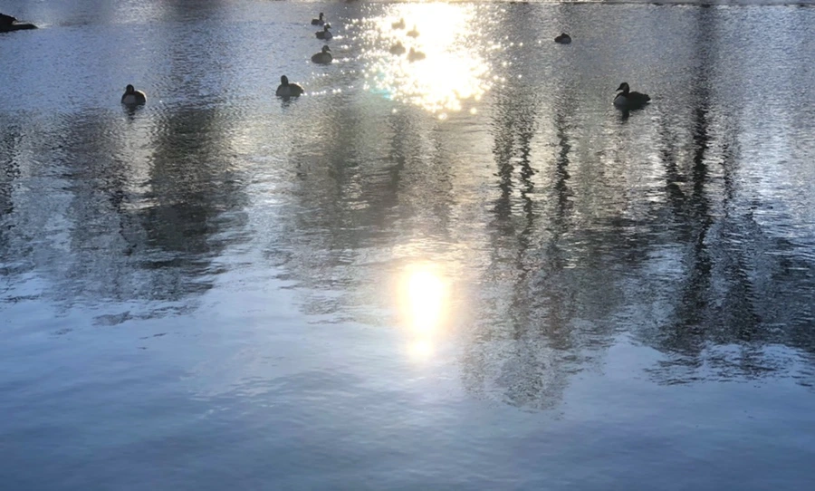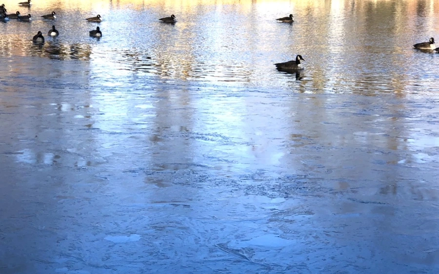 추운 겨울 아침 호수에 도착하니