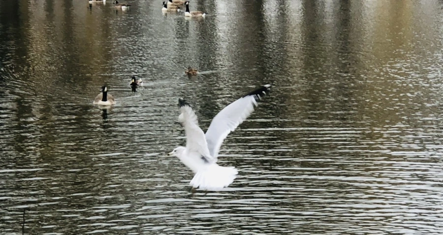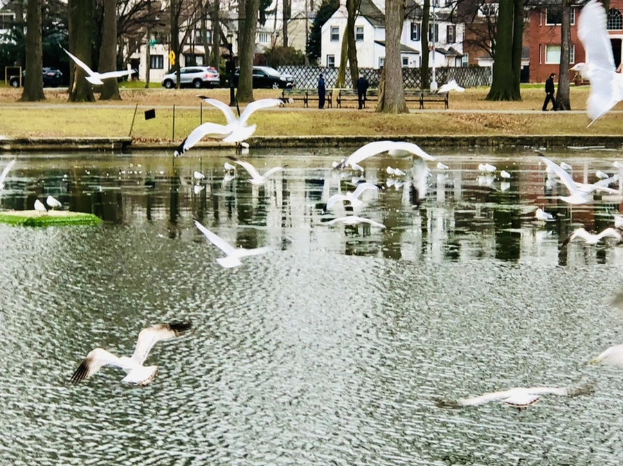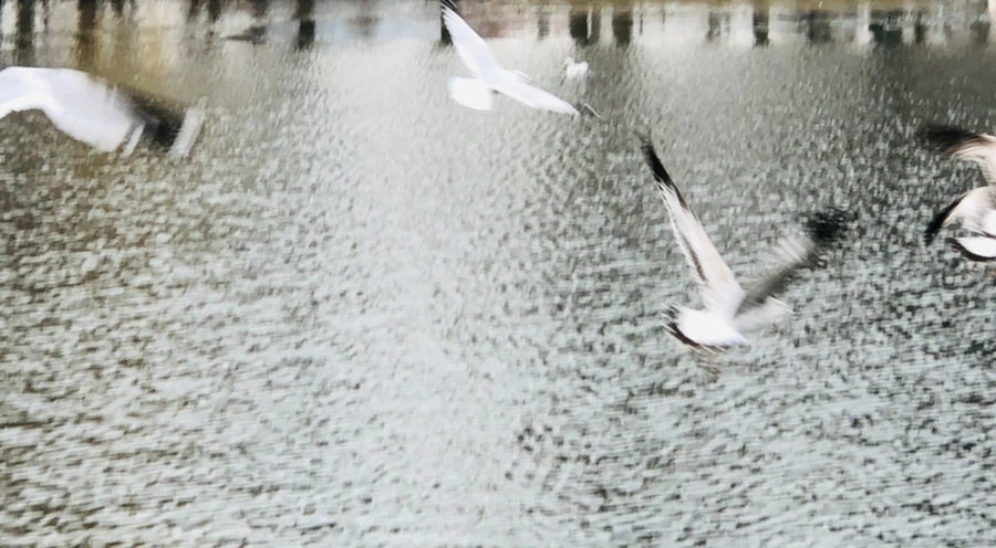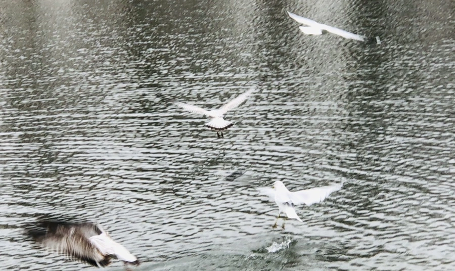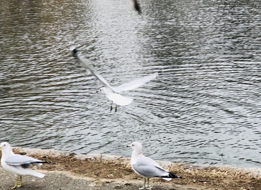갈매기와 즐겁게 논다.