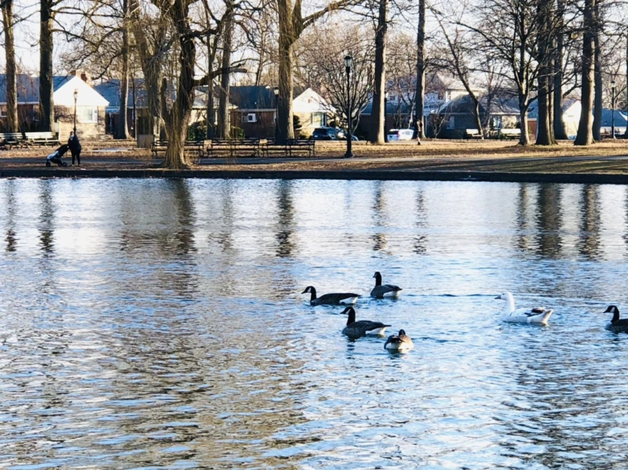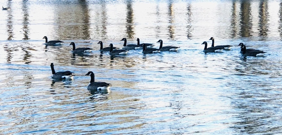 기러기 떼 노닐고