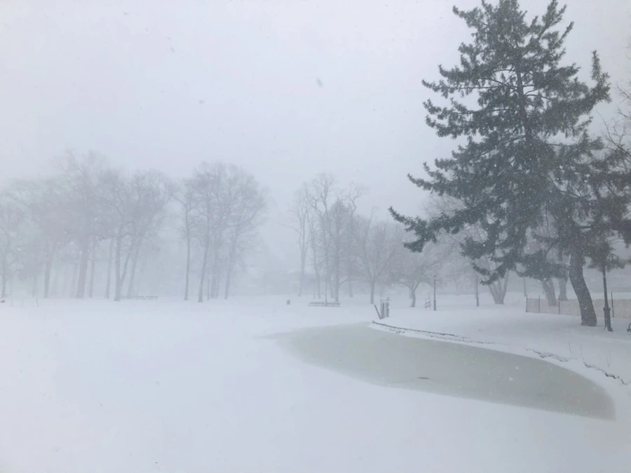 눈폭풍이 휘몰아쳐 앞이 안 보이는데