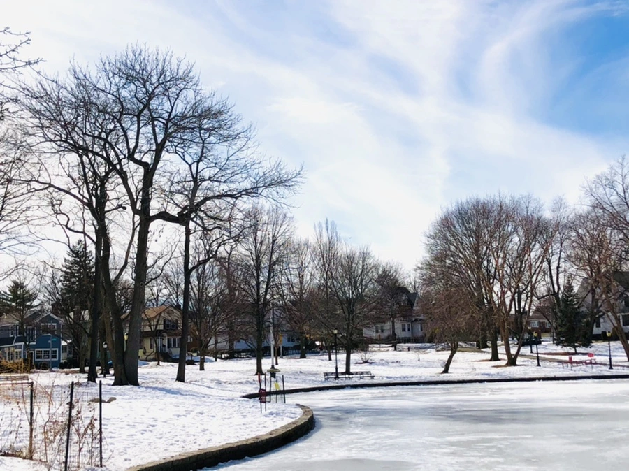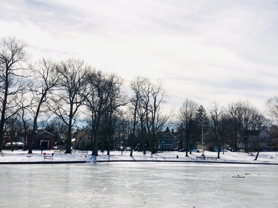 호수가 꽁꽁 얼었는데