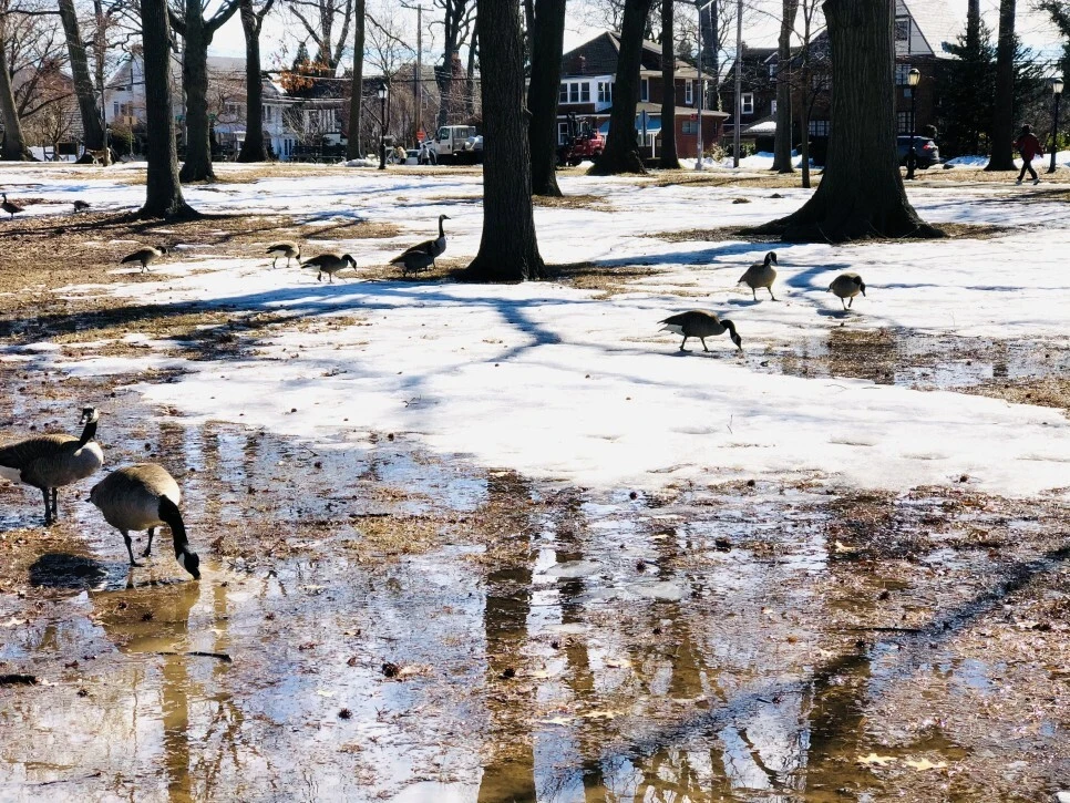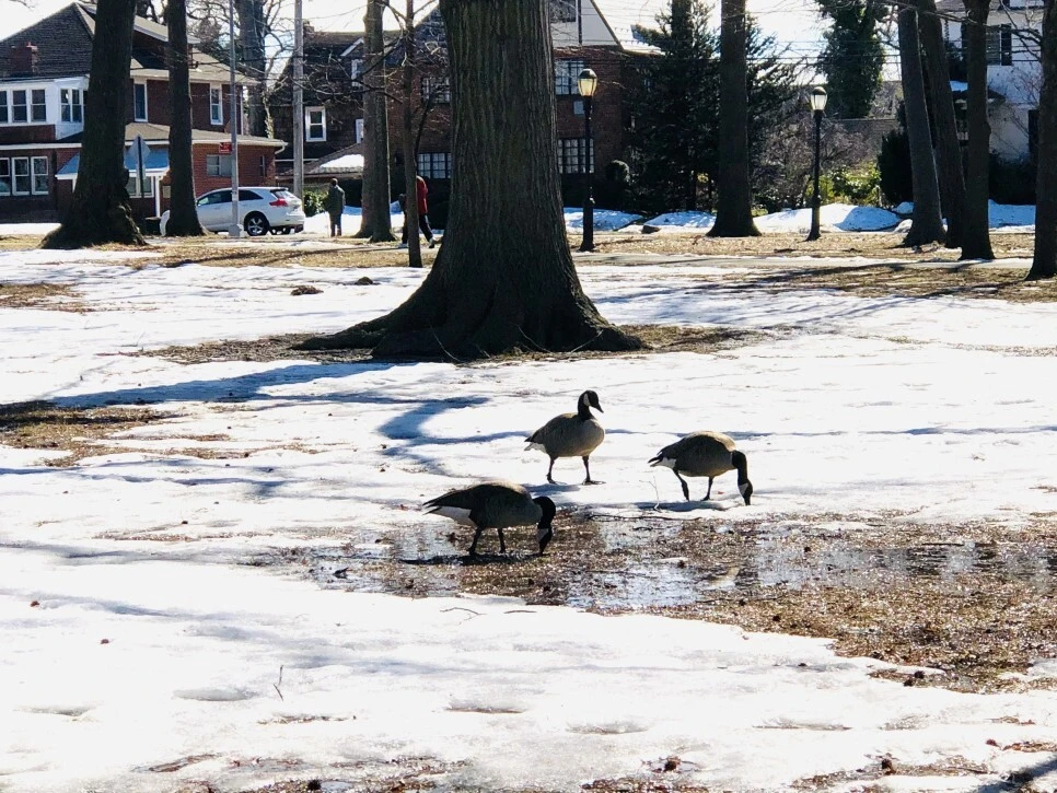 루틴대로 점심 식사를 하고 공원에 산책을 하러 갔다. 며칠 전 내린 하얀 눈이 사르르 녹고 있어서 곧 겨울이 떠날 거 같아 아쉬움 가득하니 더 오래 머물며 나도 모르게 휴대폰 셔터만 계속 누르고 마니 종일 겨울 철새랑 놀았다. 겨울 철새들도 먹이가 귀한 겨울이니 서로 싸우니 매일 괴성을 듣는다. 동네 주민이 나타나면 반가운지 멀리서 날아온다.