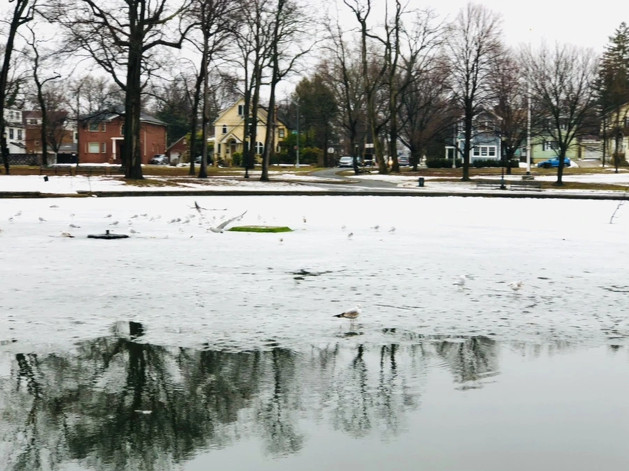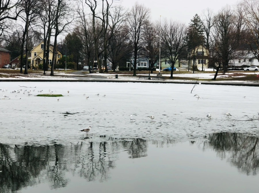 겨울비 내린 호수