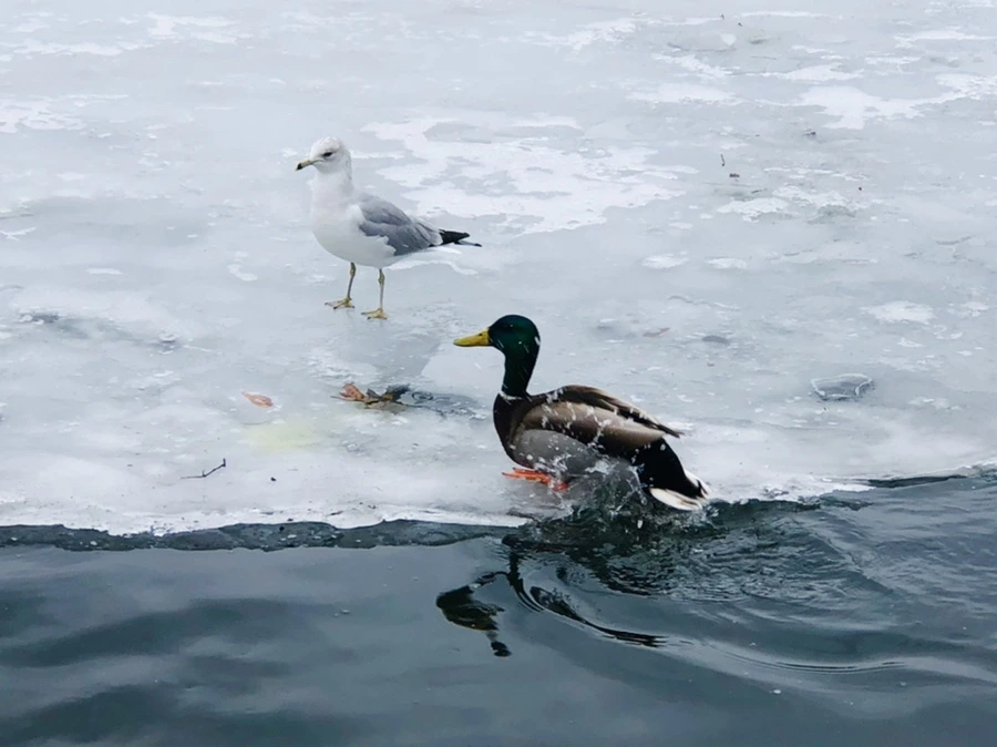 청둥오리들도 날씨가 따뜻하니 호수에 돌아와 반가웠다.