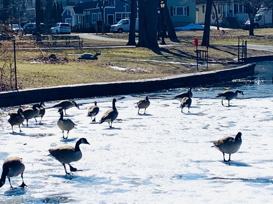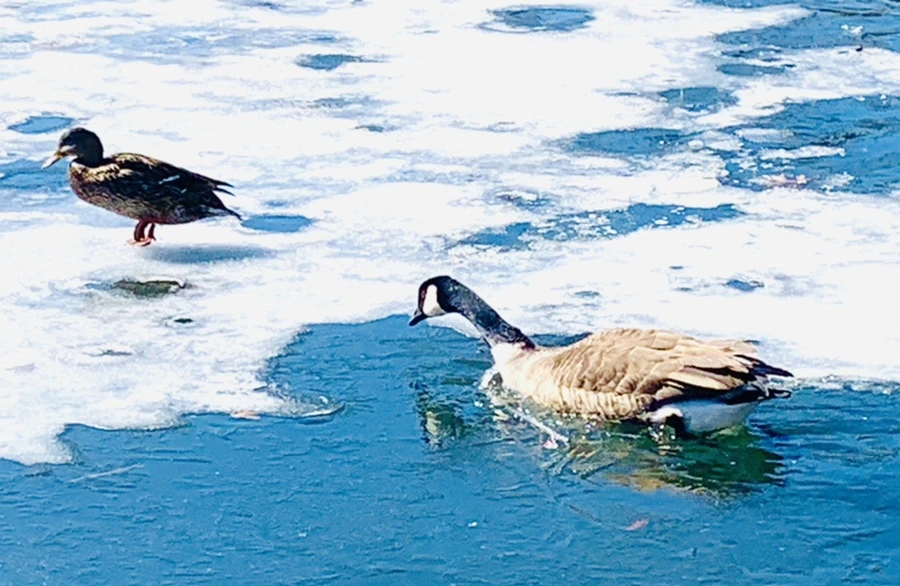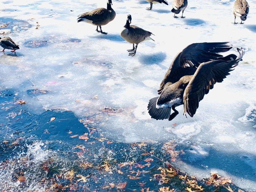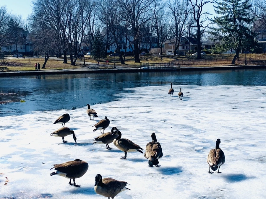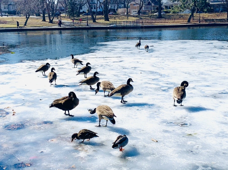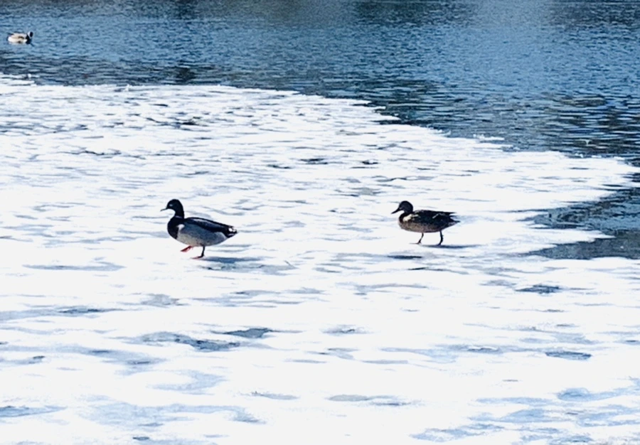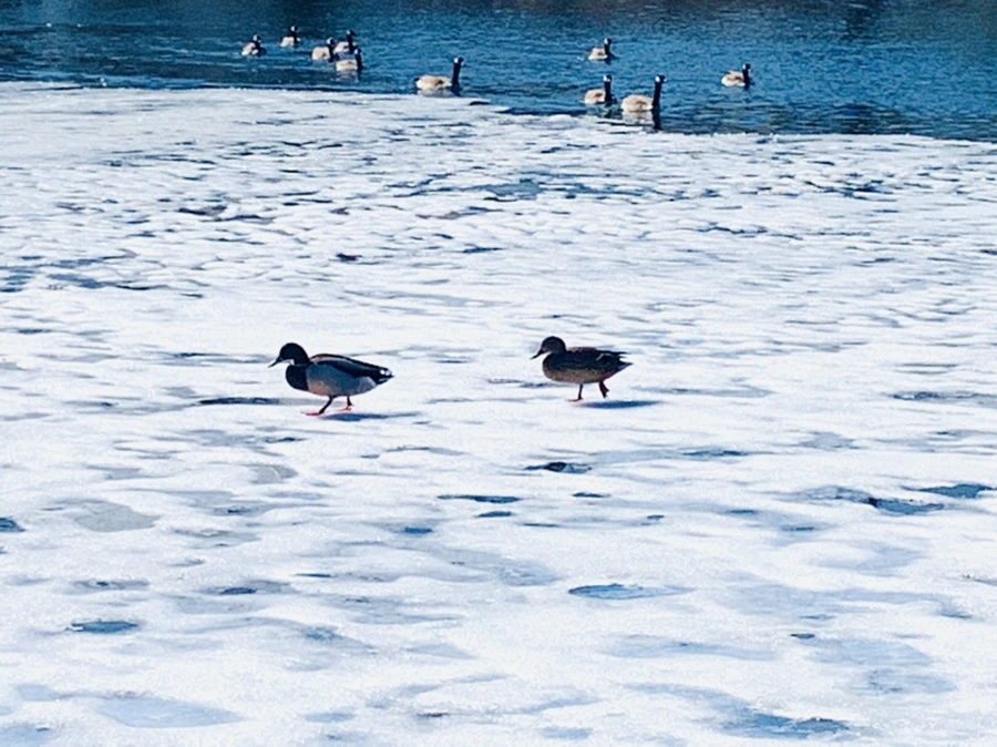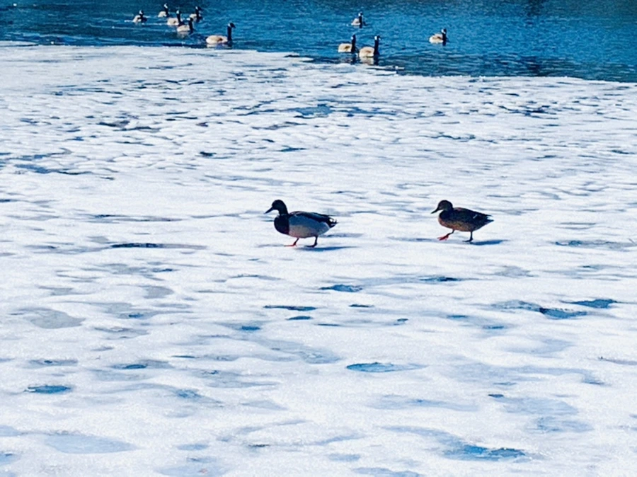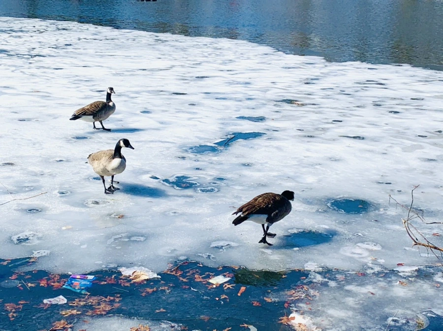 아직도 호수가 꽁꽁 얼어 있는 부분도 있는데