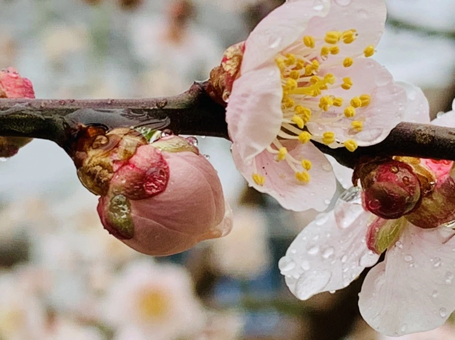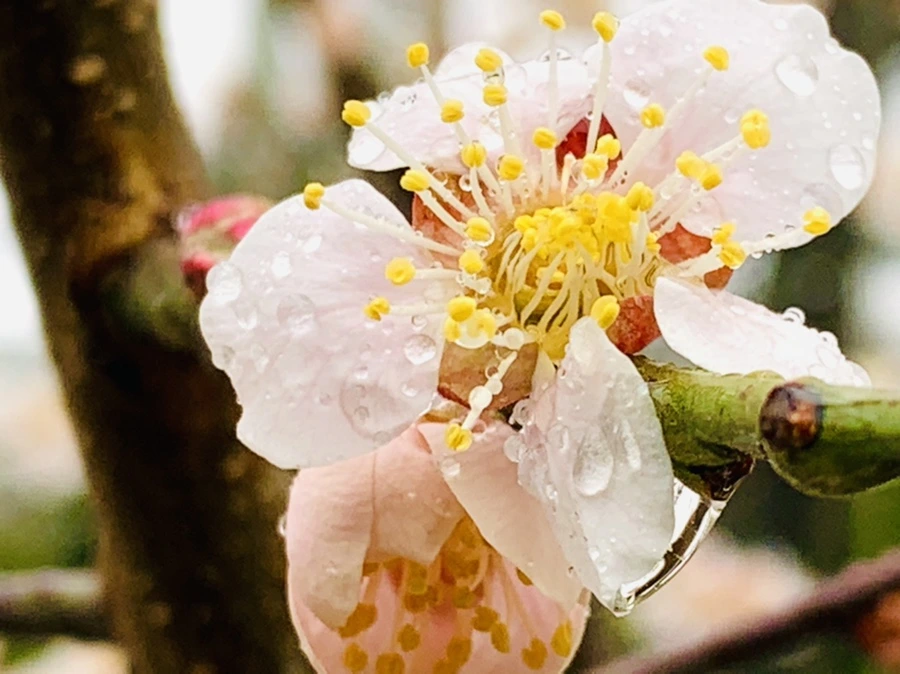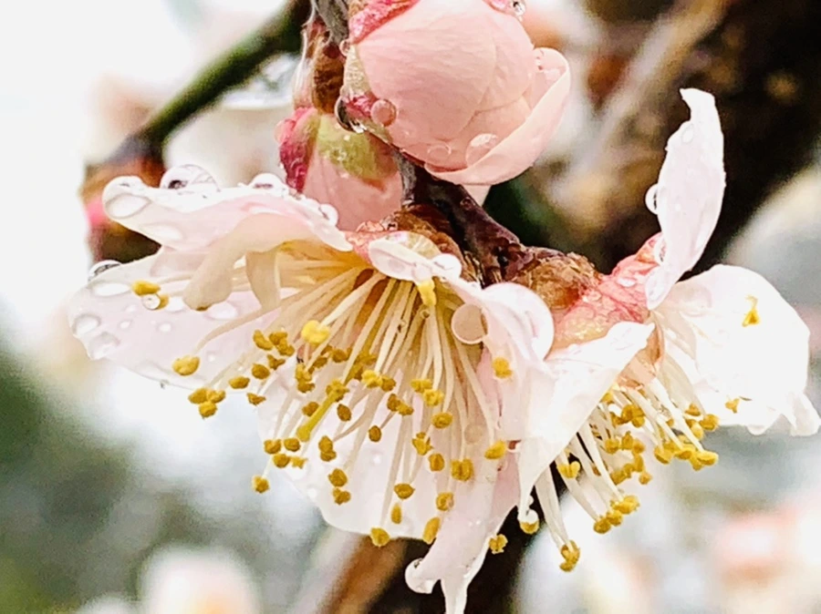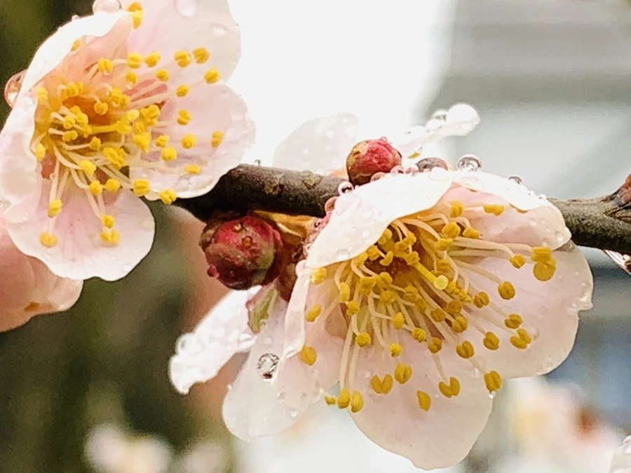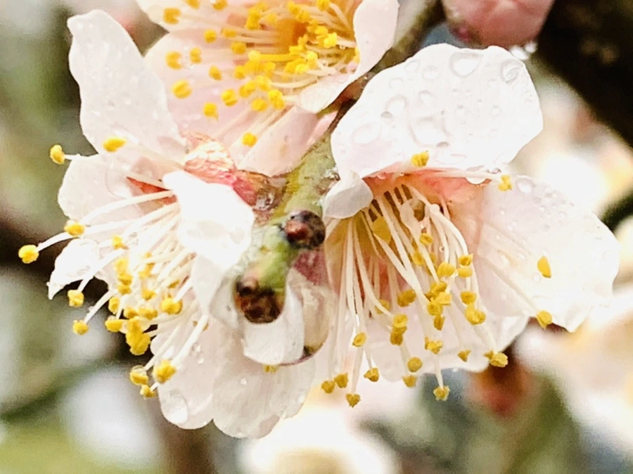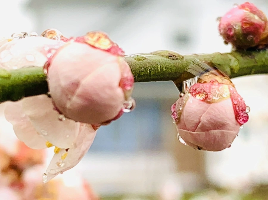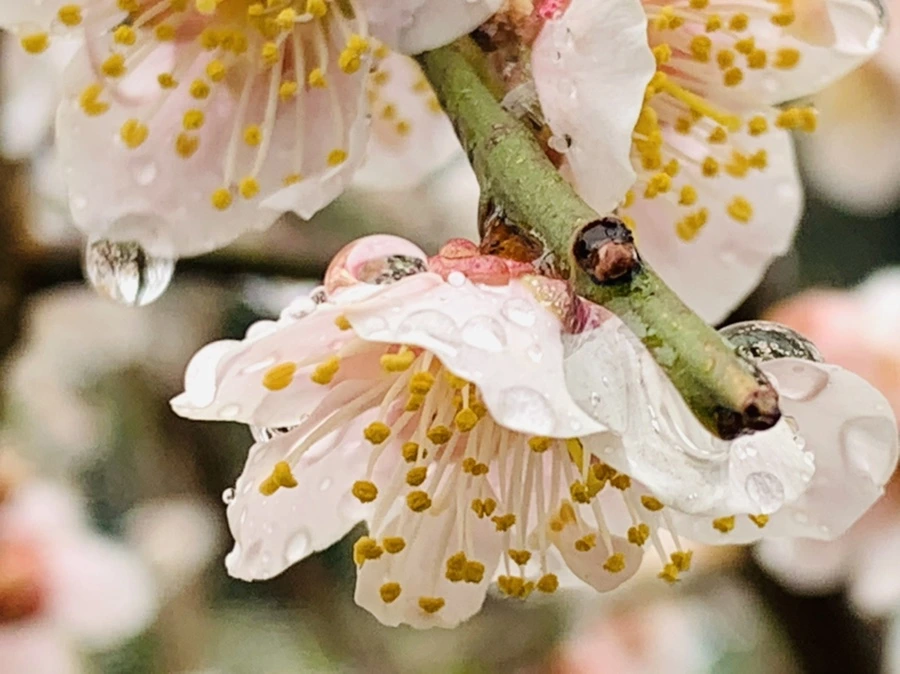 봄비에 젖은 예쁜 매화꽃을 렌즈에 담느라