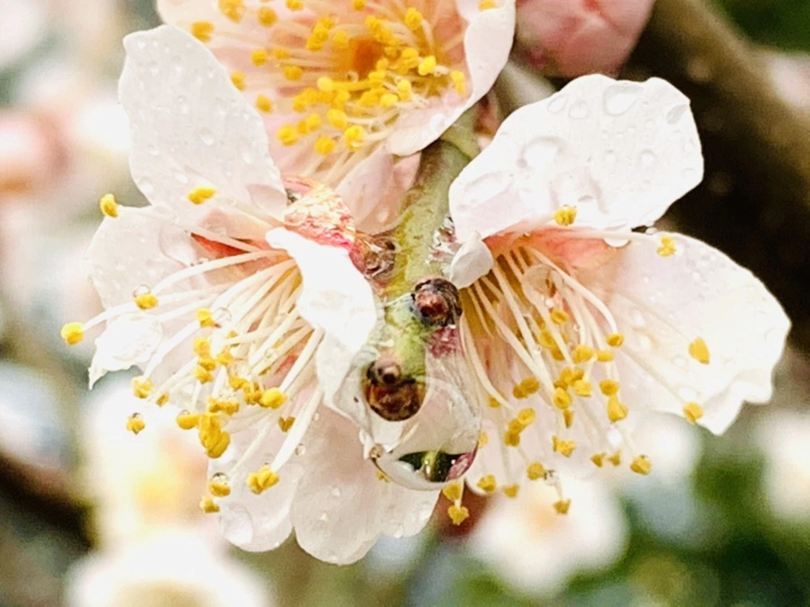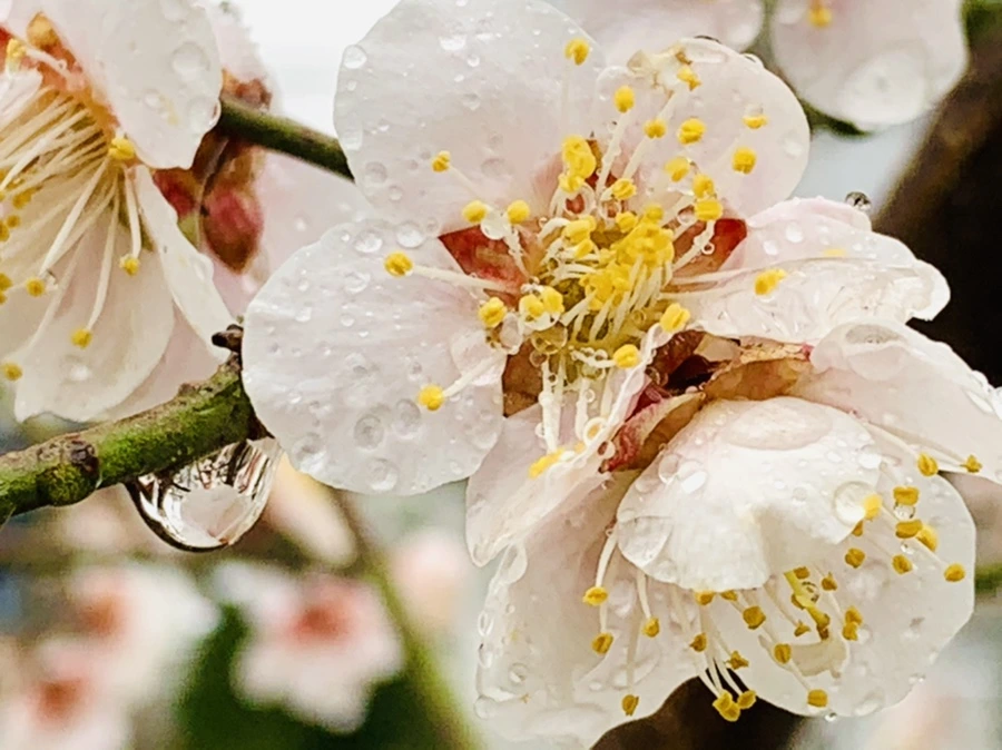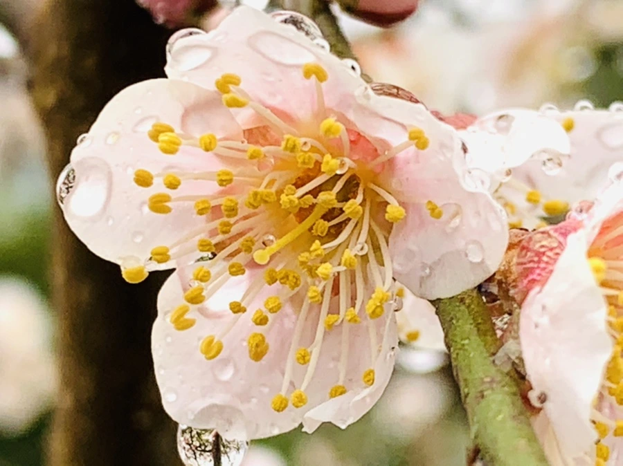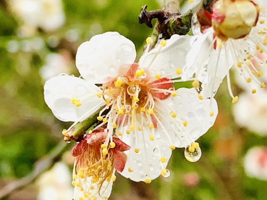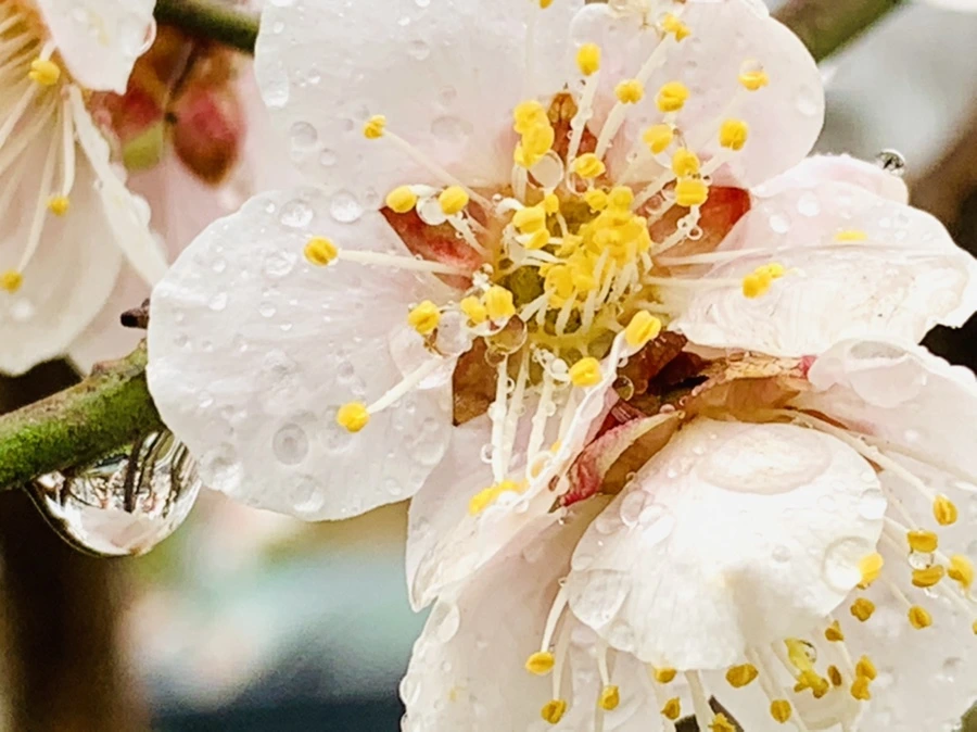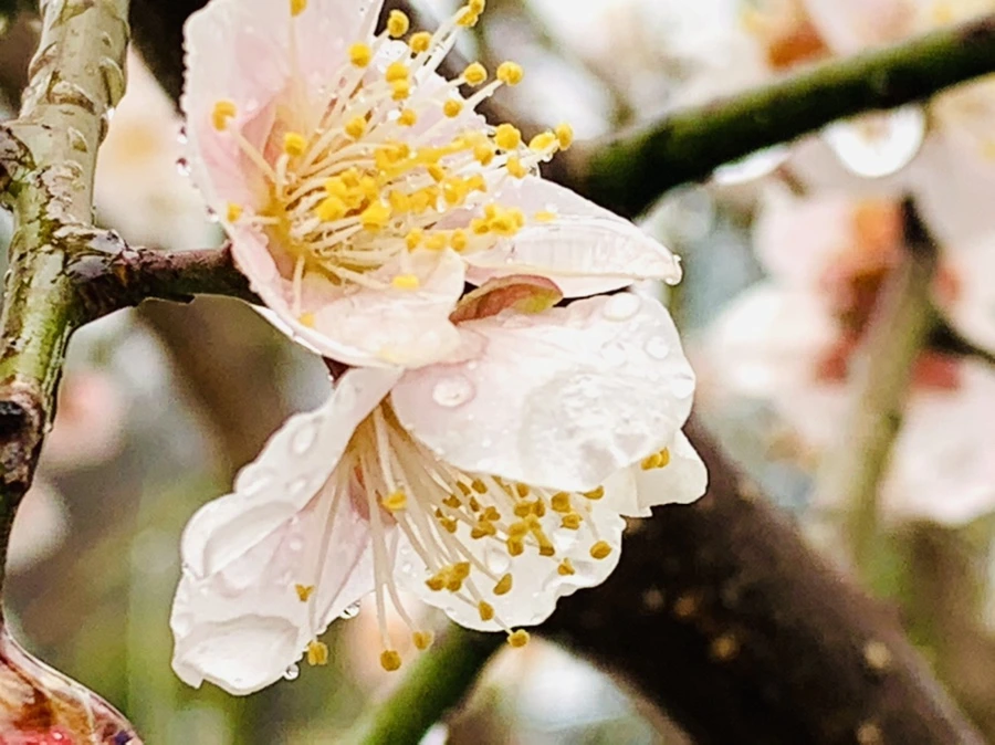 봄비에 젖은 예쁜 매화꽃을 렌즈에 담느라
