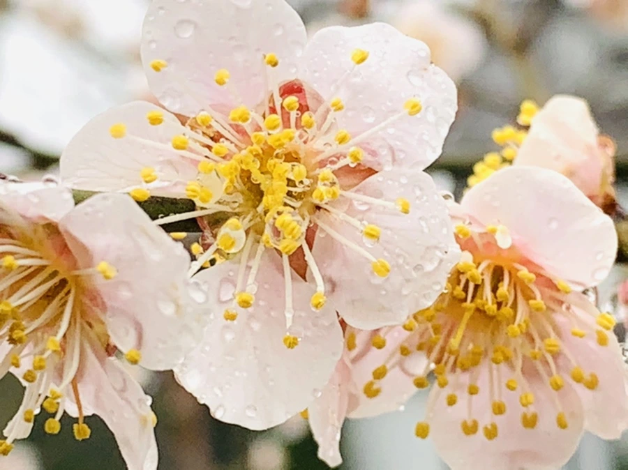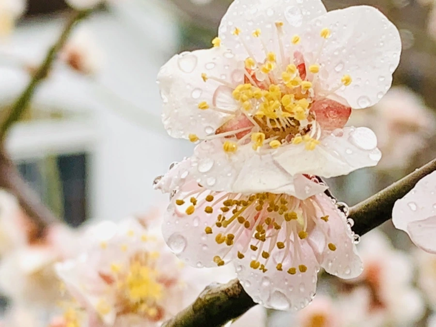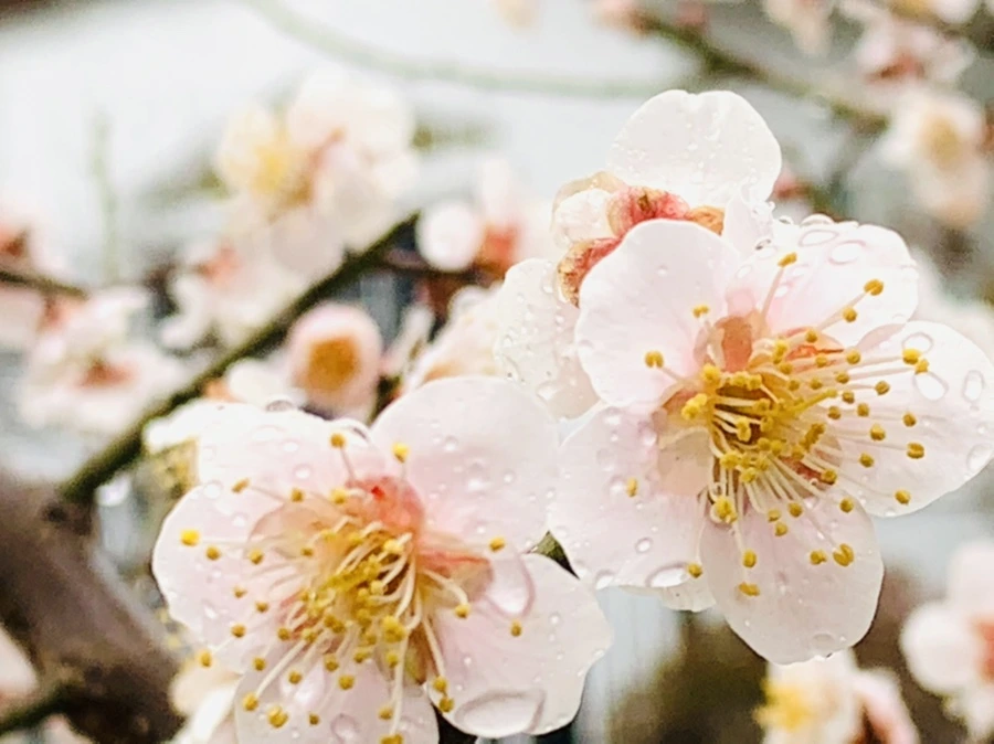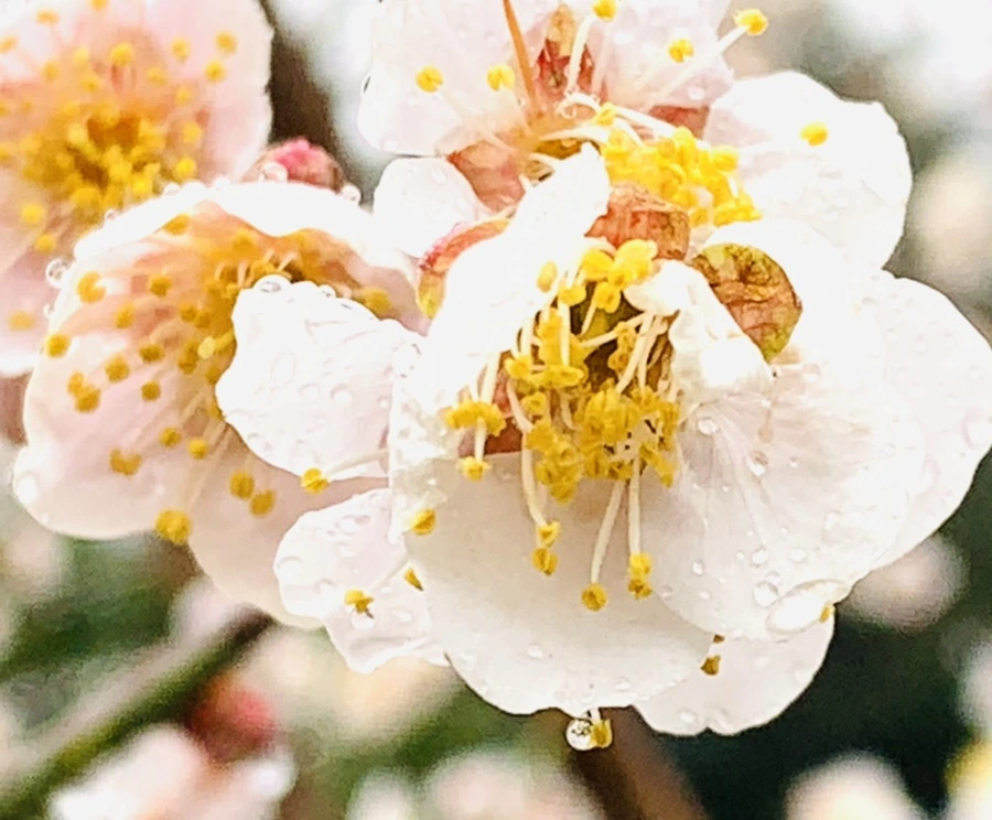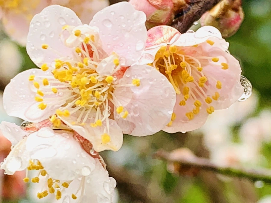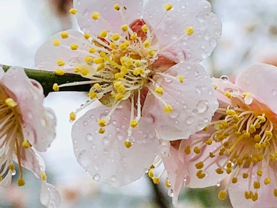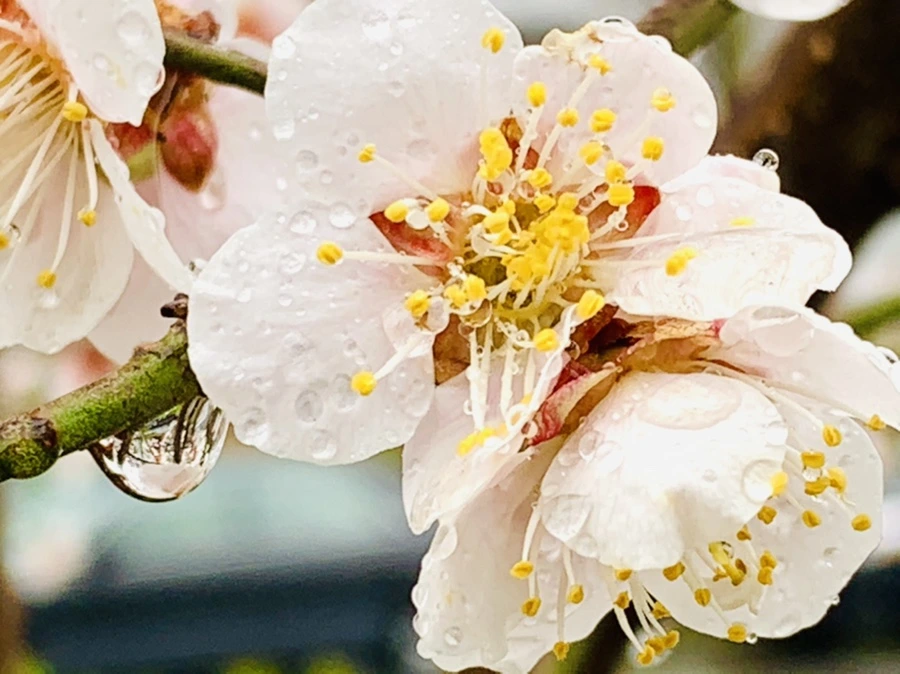 봄비에 젖은 예쁜 매화꽃을 렌즈에 담느라