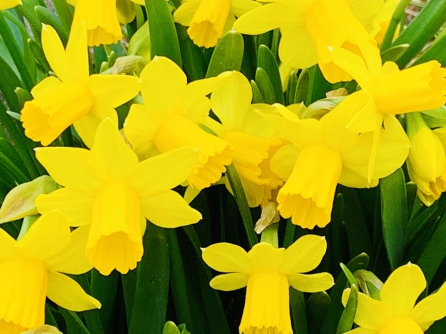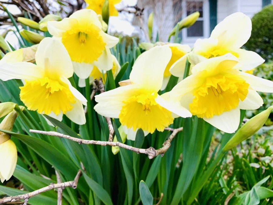 줄지어 뻗쳐 있는 수선화