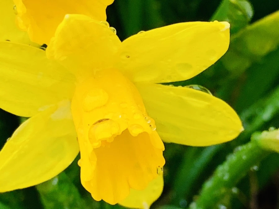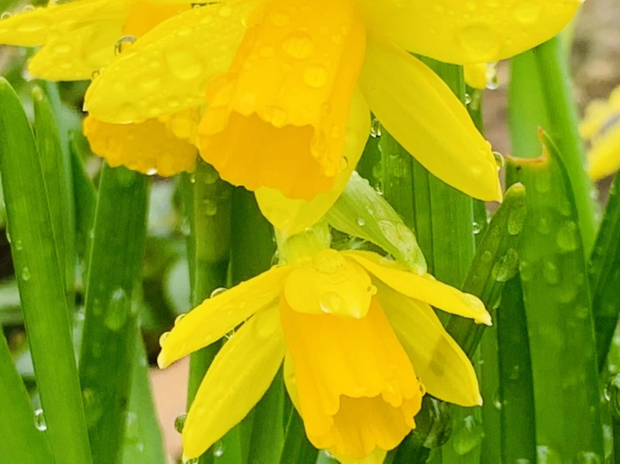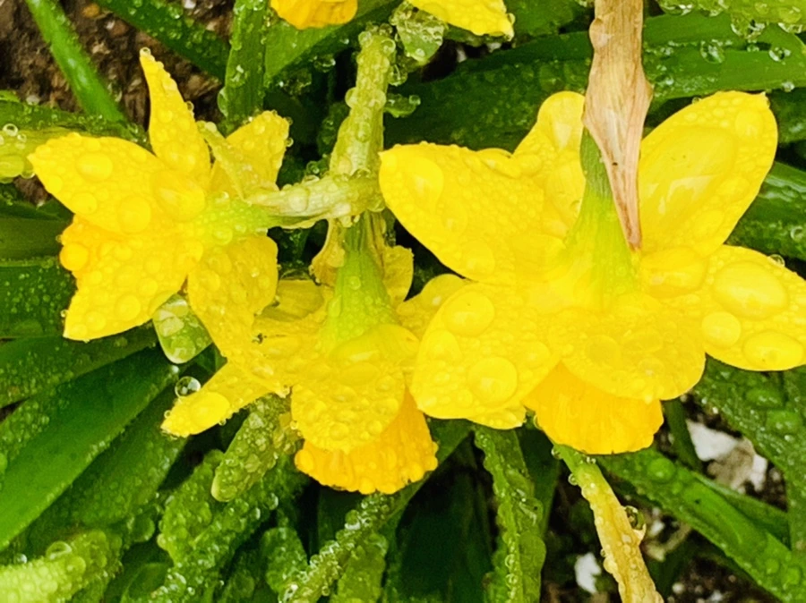내가 사랑하는 노란 수선화 꽃이 울고 있다.