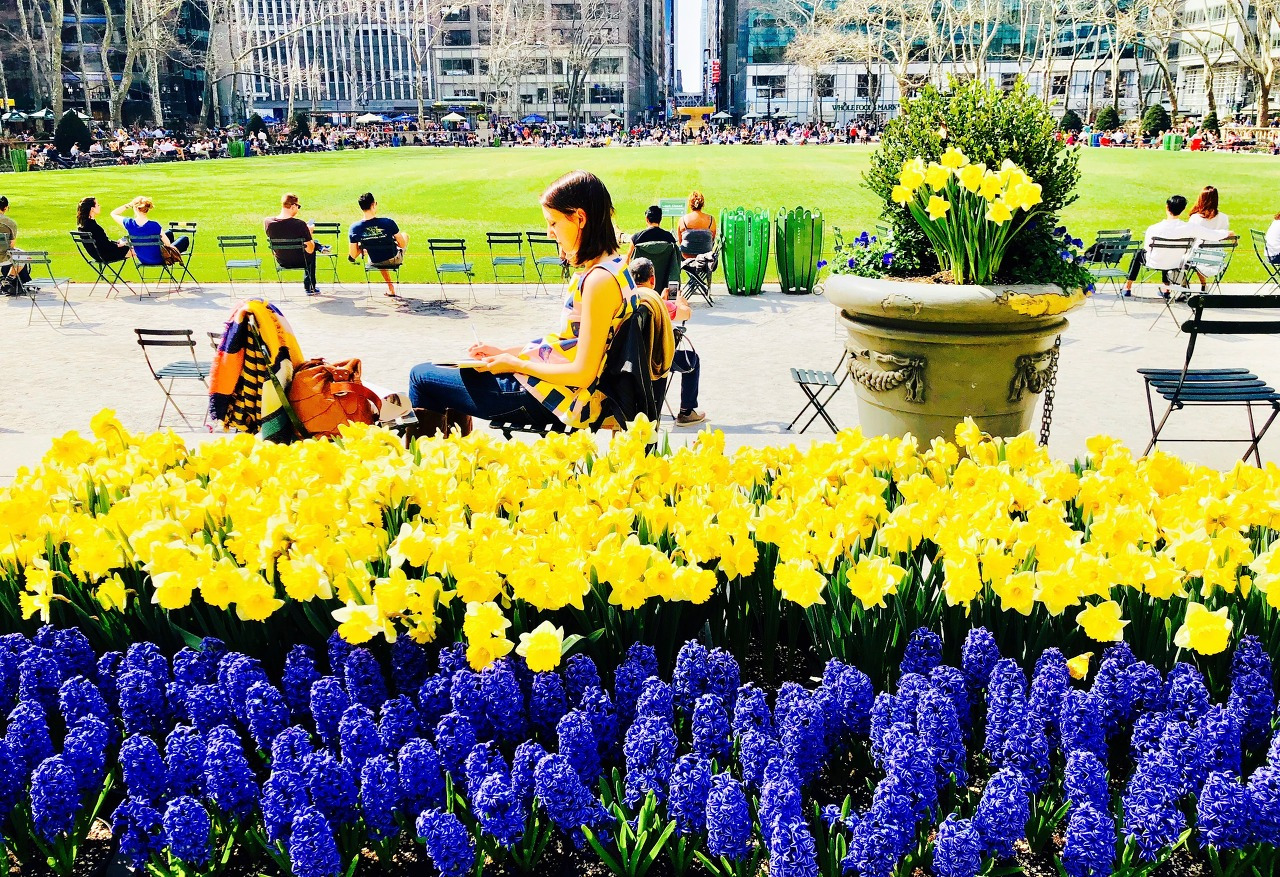황금빛 수선화 물결이 춤추는 맨해튼 브라이언트 파크