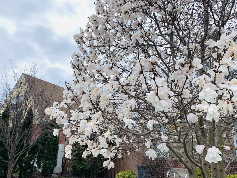 창가에 목련꽃노래가 흐르는 아름다운 계절뉴욕에 자목련꽃이 백목련꽃 보다 더 많이 핀다.