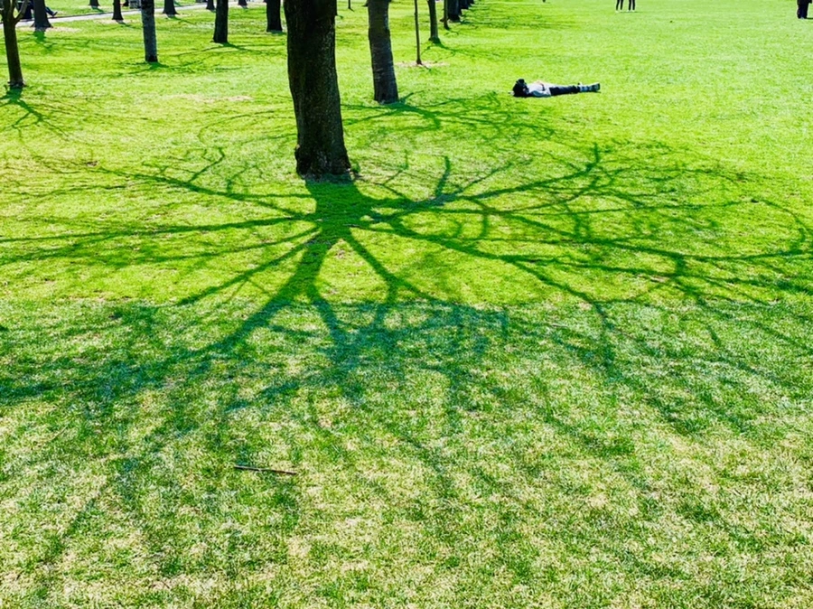 벚꽃 산책로 초록 풀밭에 누워