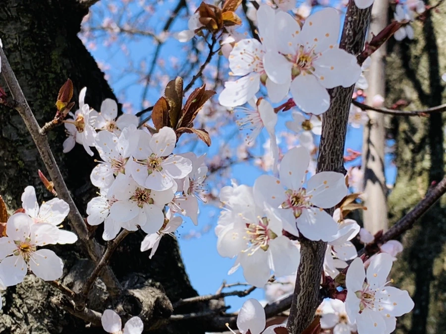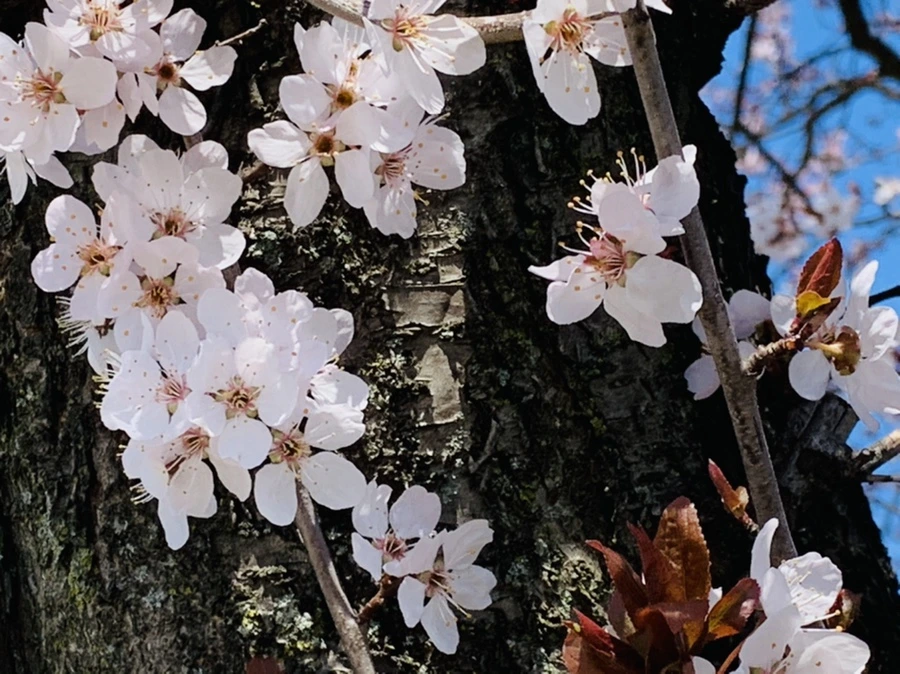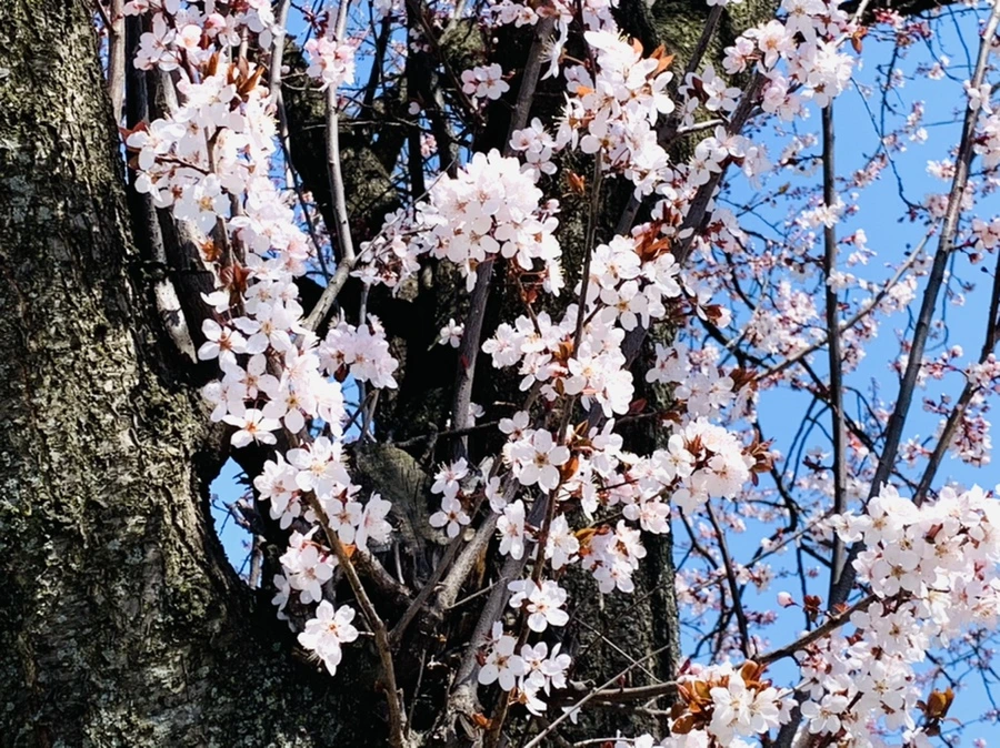우연히 매화나무를 발견하고 탄성을 질렀다.