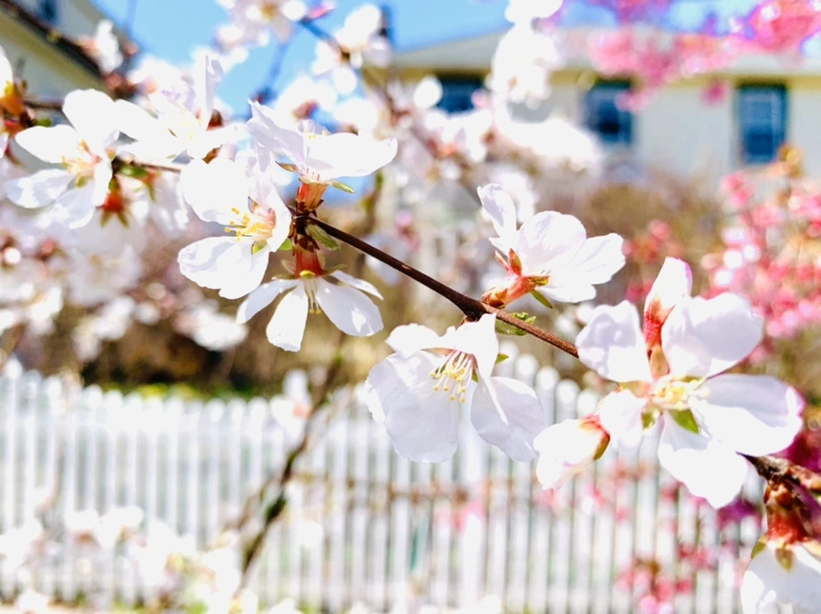 뉴욕은 4월 중순이 되어야 벚꽃이 한창이고 겹벚꽃은 대개 4월 말경에 핀다. 이웃집 뜰에 하얀색 벚꽃이 피기 시작해 내 마음도 화사해졌다. 꽃을 보면 기분이 좋아. 꿀벌과 나의 동선이 같은 봄 봄 봄. 꽃피는 계절이라 나비도 훨훨 날아다닌다.