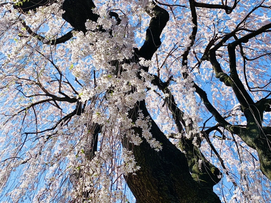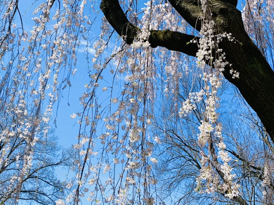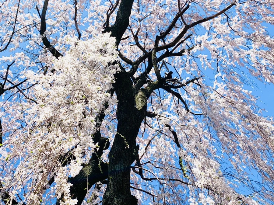 이웃집 뜰 벚꽃 나무 아래에 서면