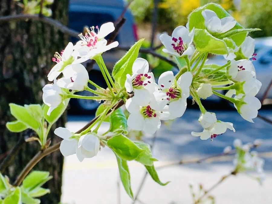 봄 햇살에 반짝이는 가로수 꽃도 무척 예뻐 걸음을 멈추게 한다.
