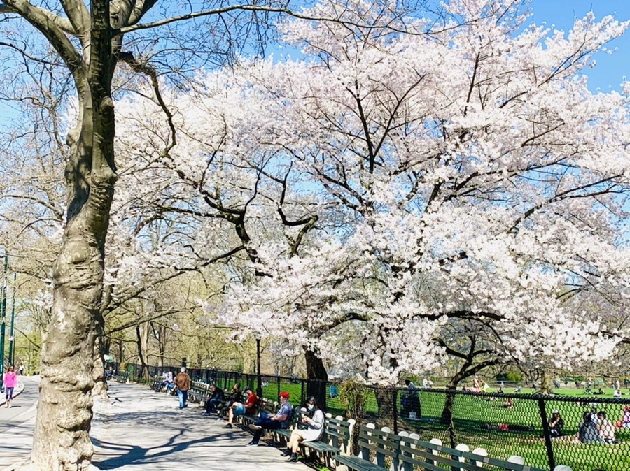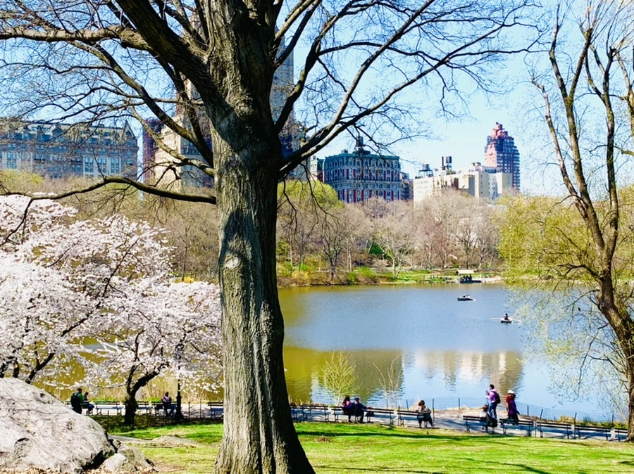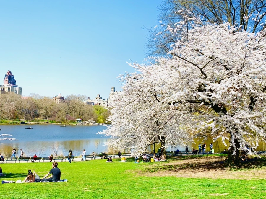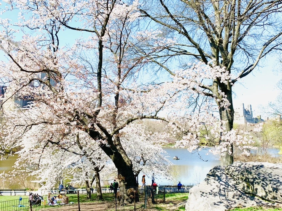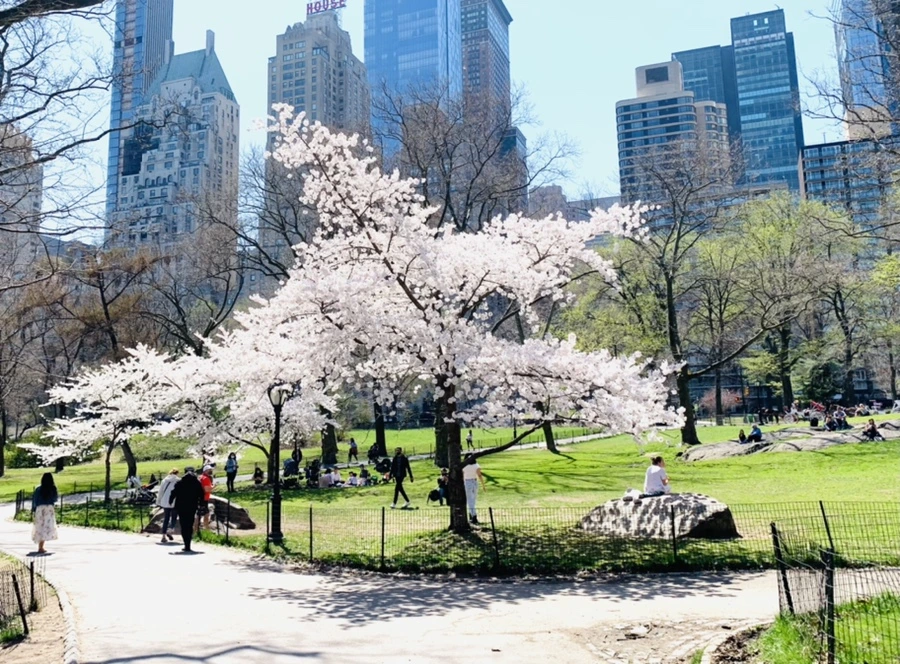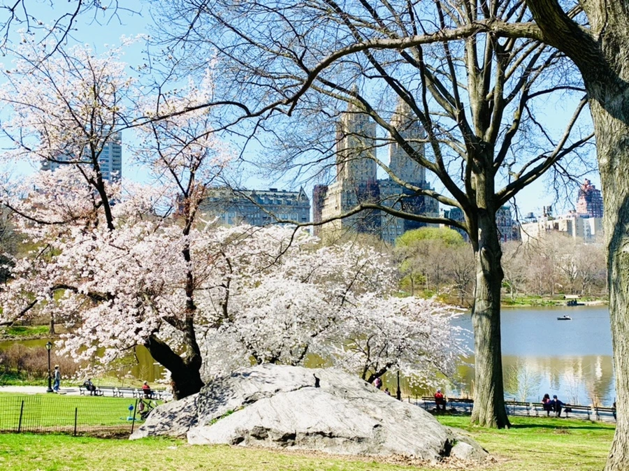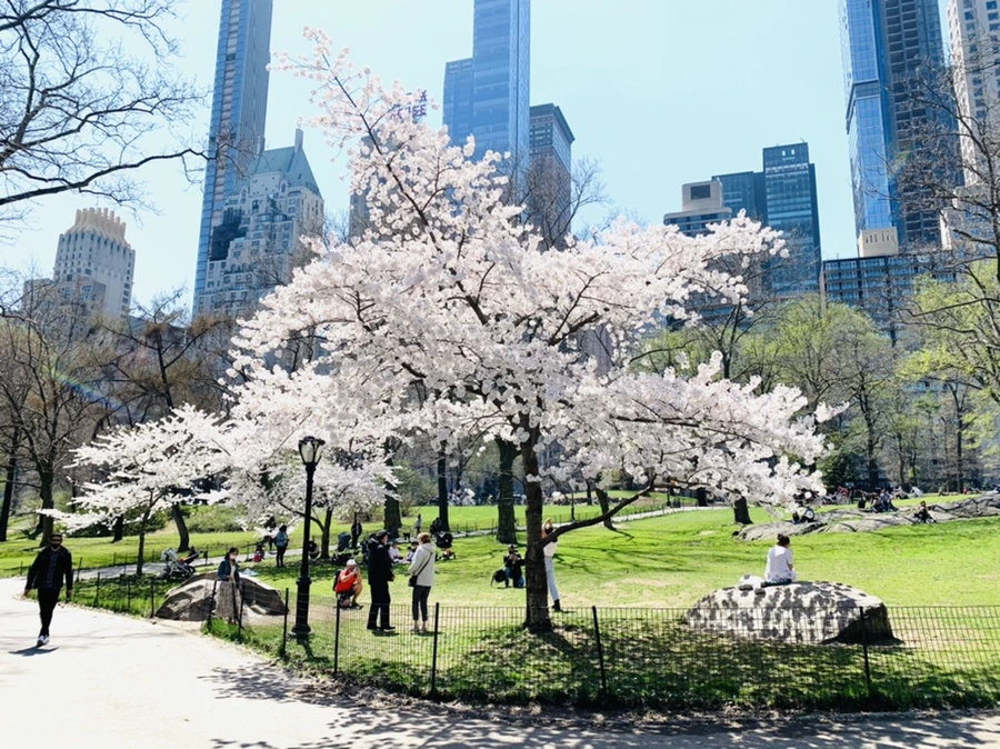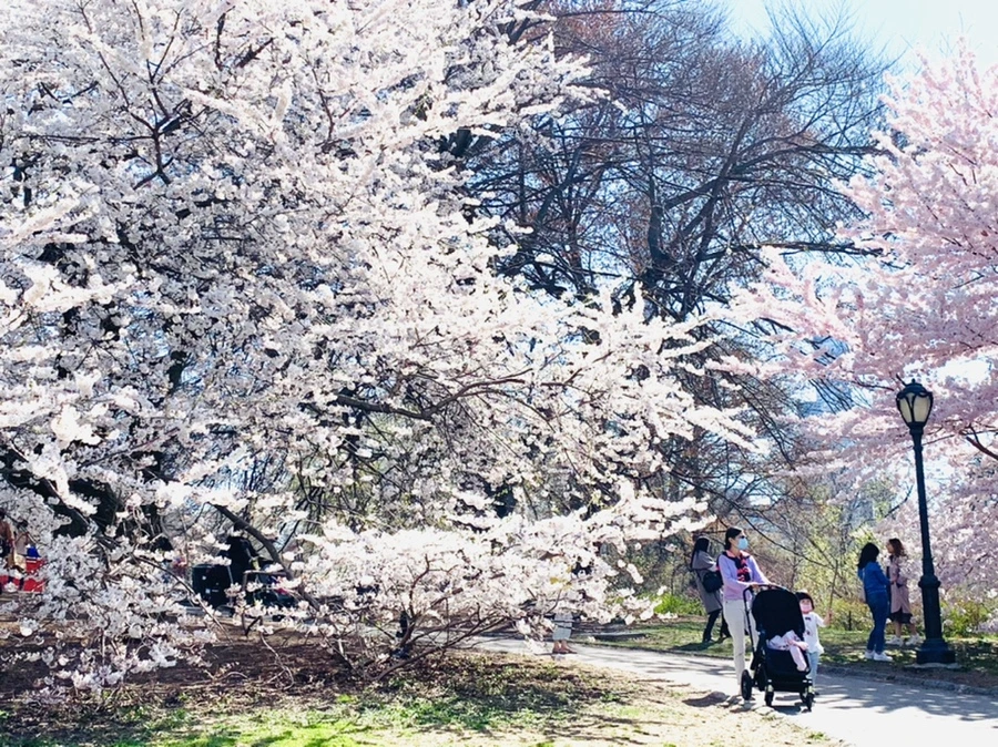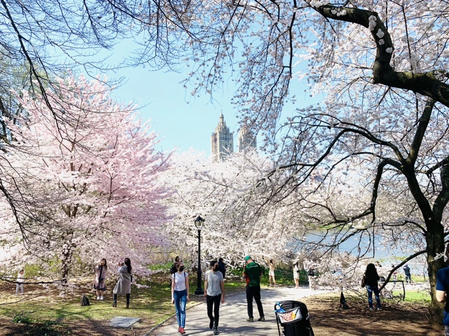 센트럴 파크에 화사한 벚꽃이 피어