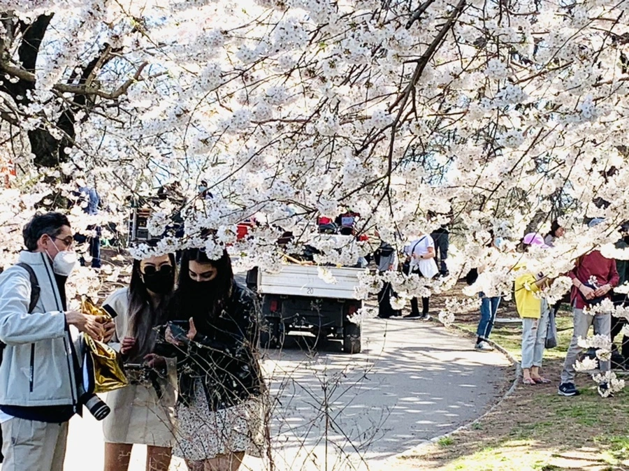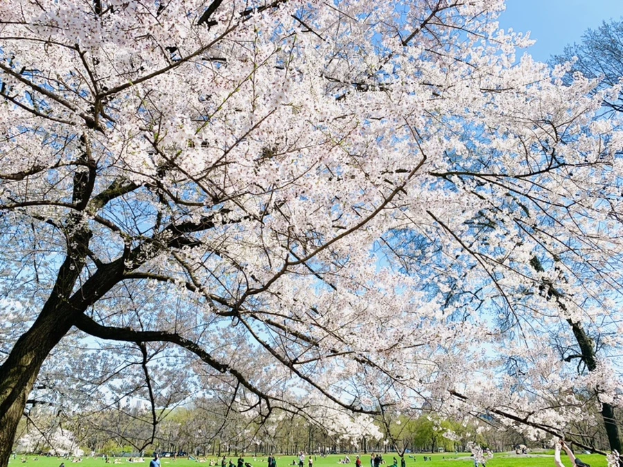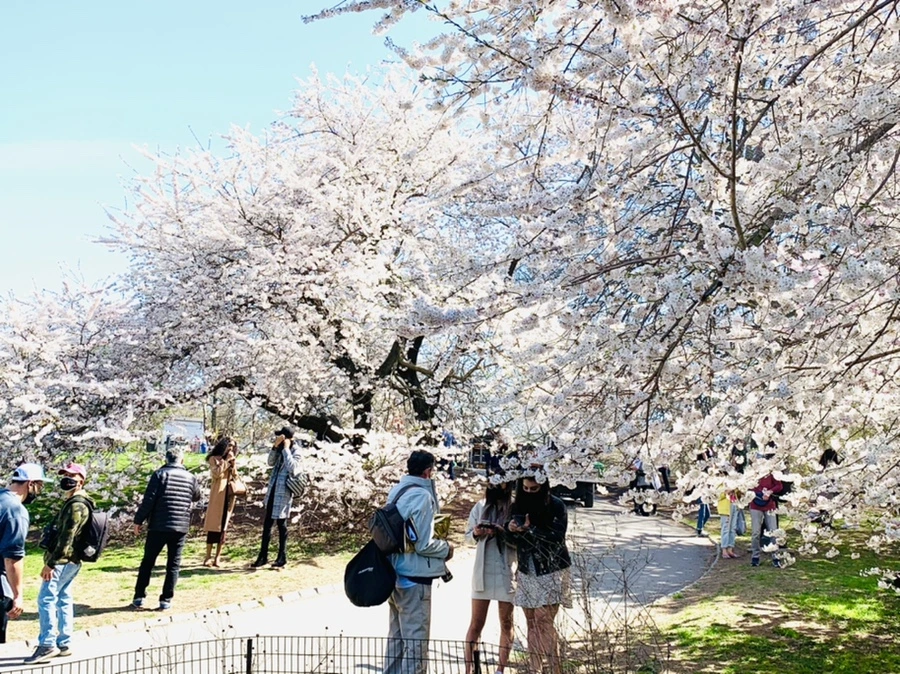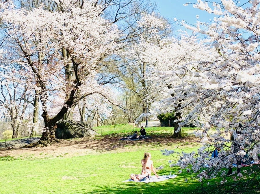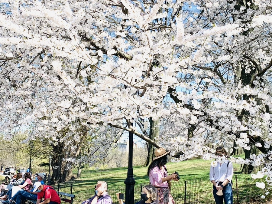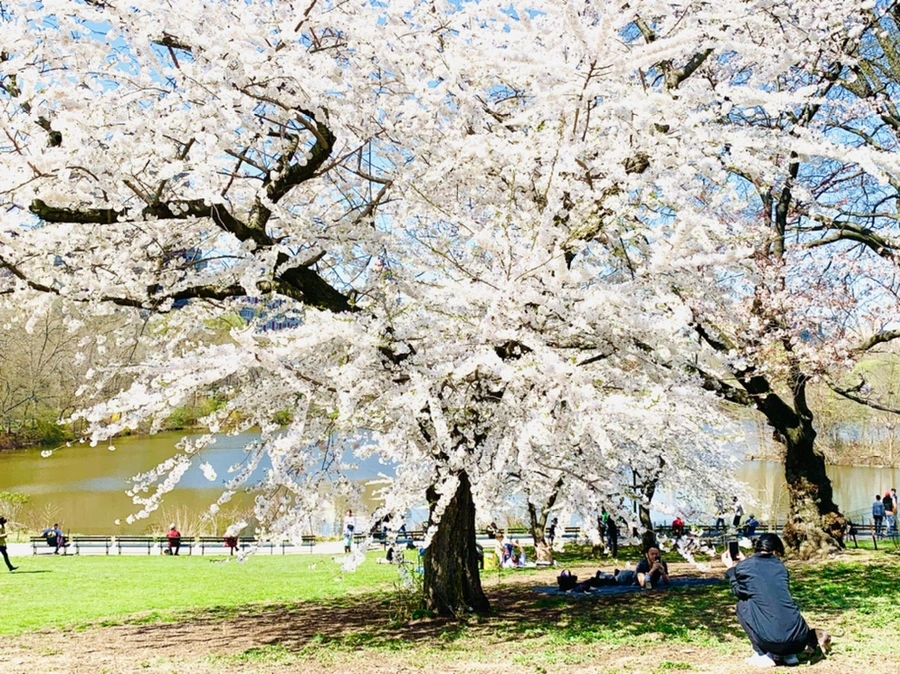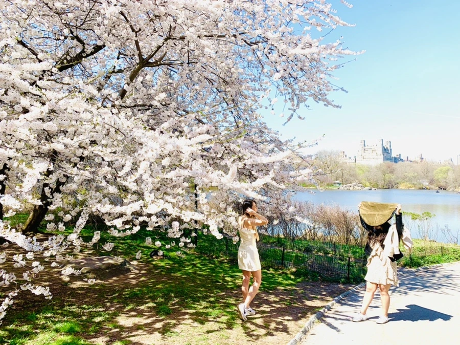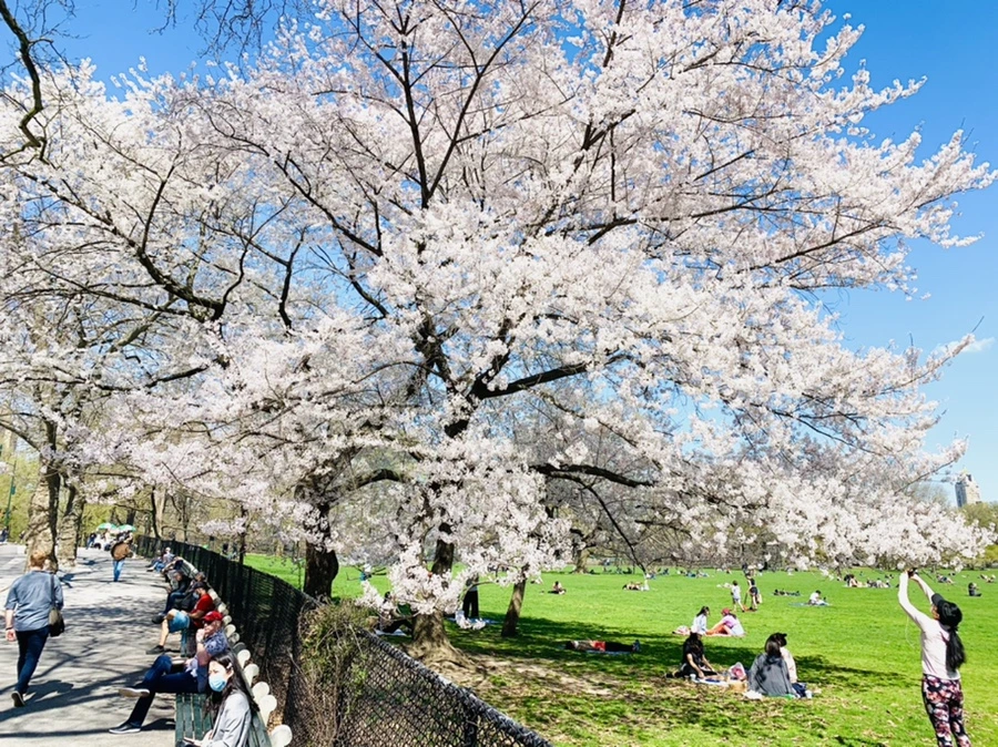 센트럴 파크에 화사한 벚꽃이 피어