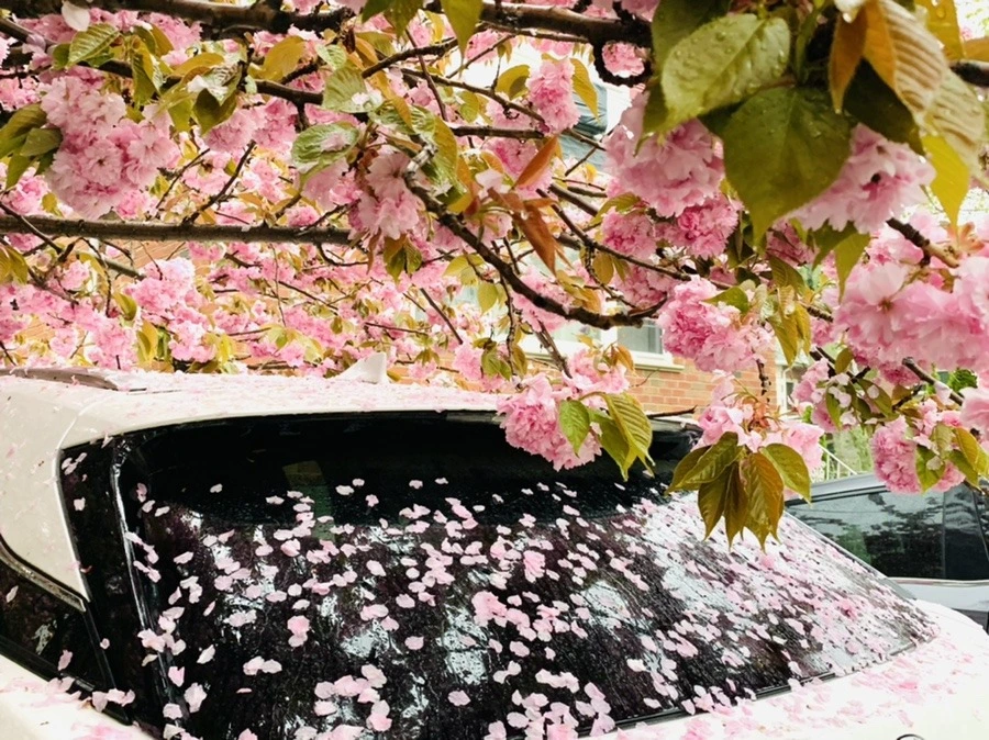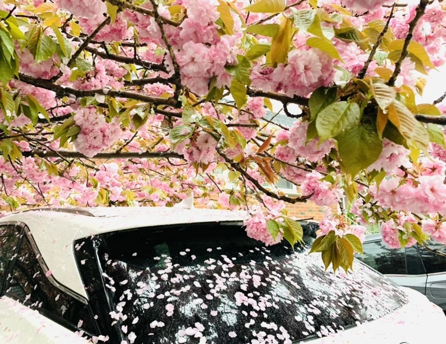 화사한 분홍빛 겹벚꽃잎들이