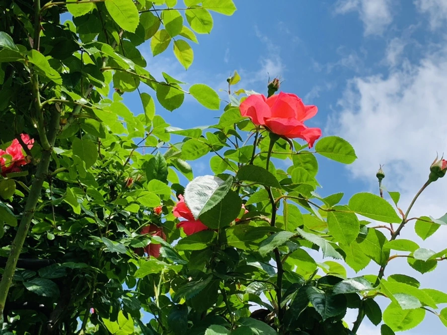 주렁주렁 매달려 있는 장미꽃 송이가