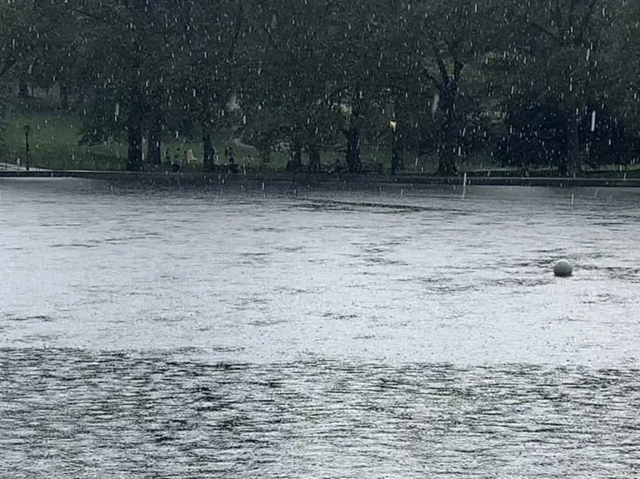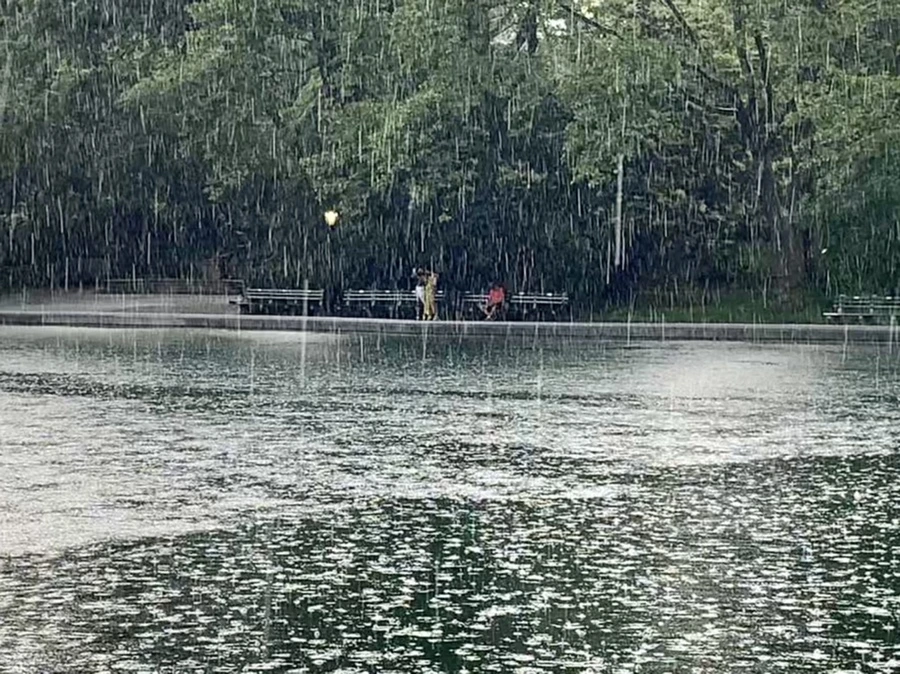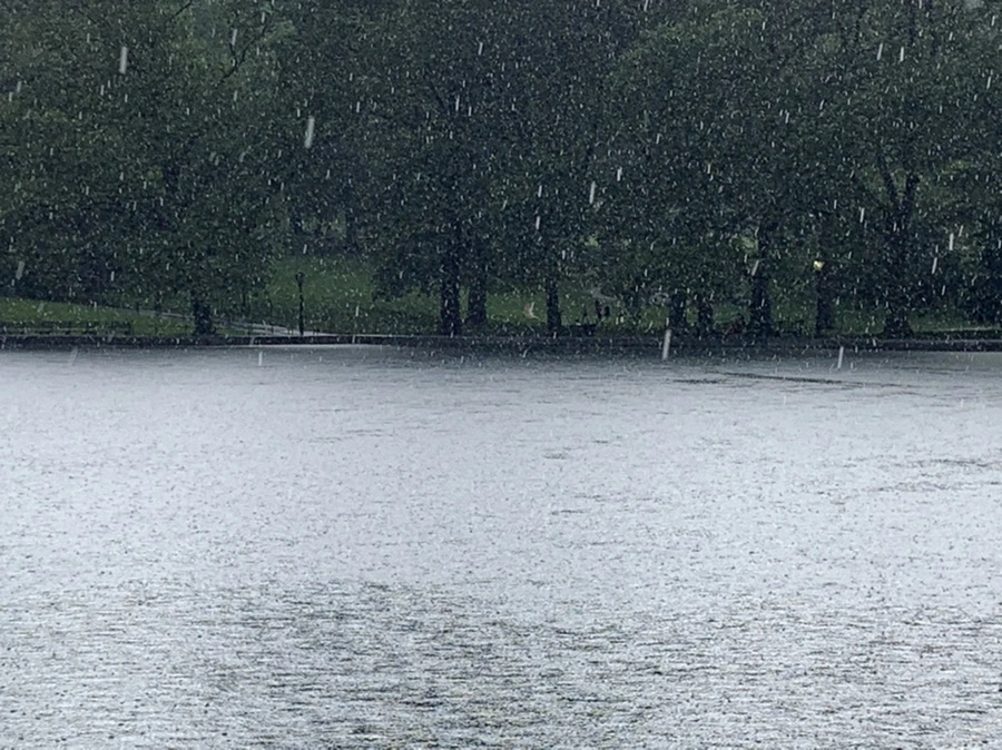 갑자기 하늘에서 소나기가 떨어졌다.