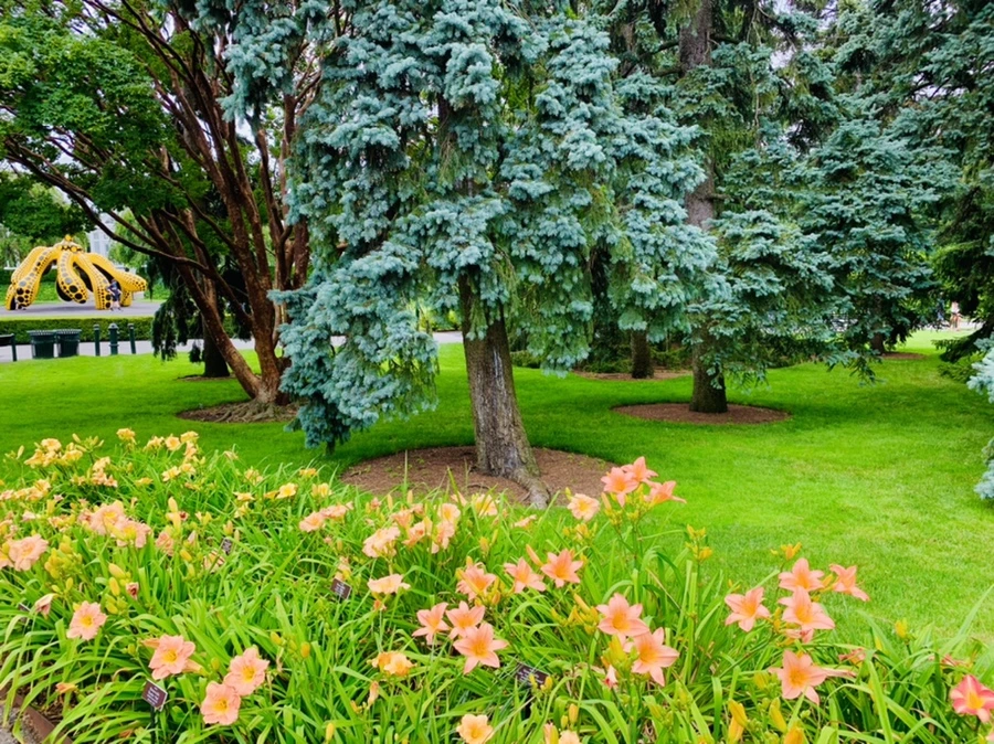 뜻밖에 백합꽃 정원을 보고 기뻤다.
