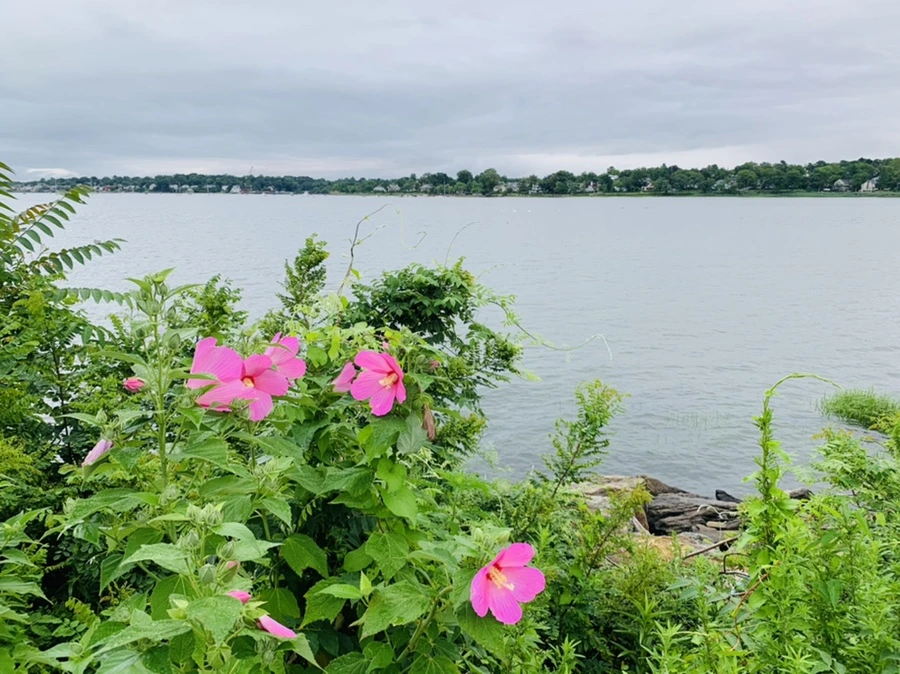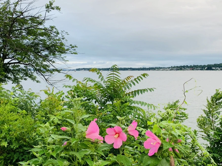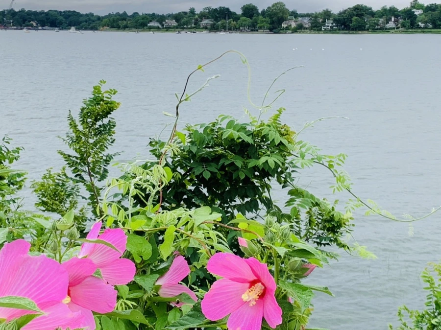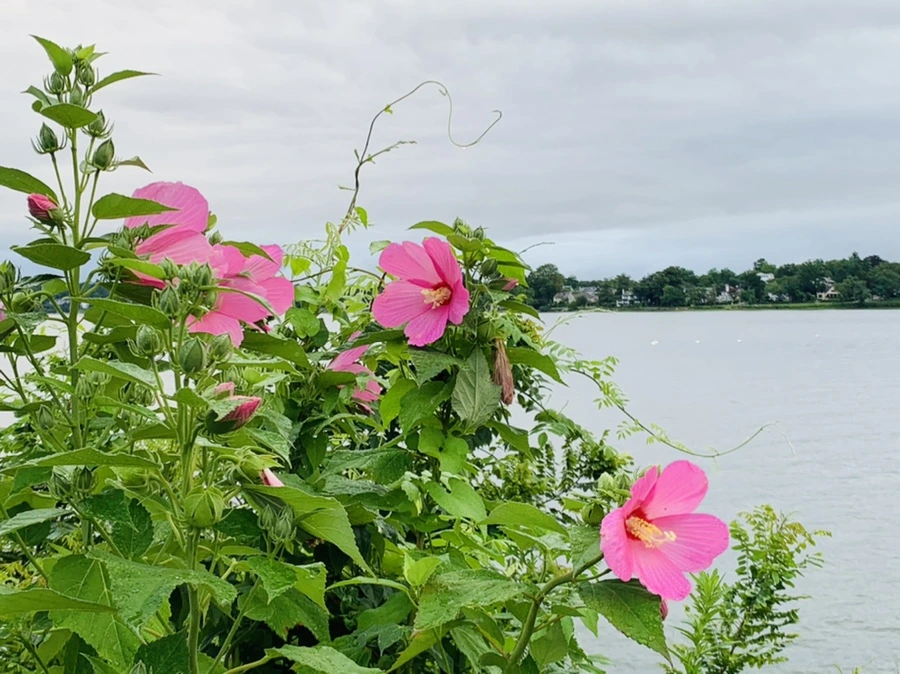 우리나라 무궁화 꽃 핀 바닷가가 정말 예쁘구나.