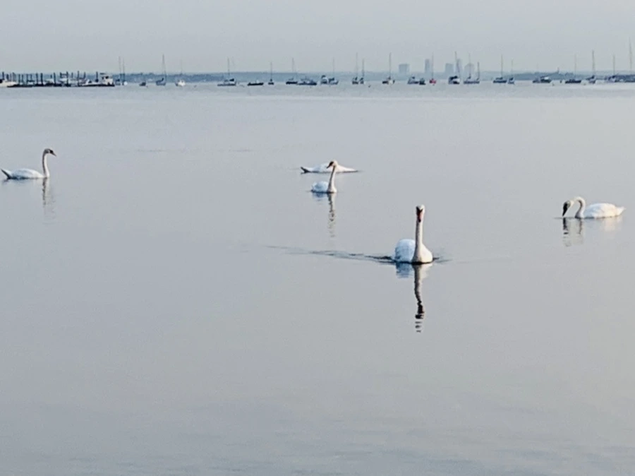 백로와 백조가 산책하는 바다는