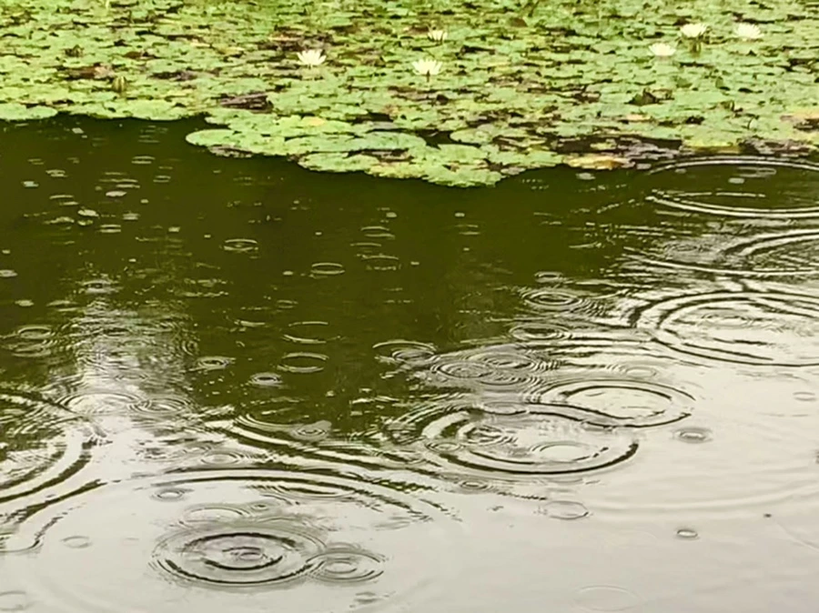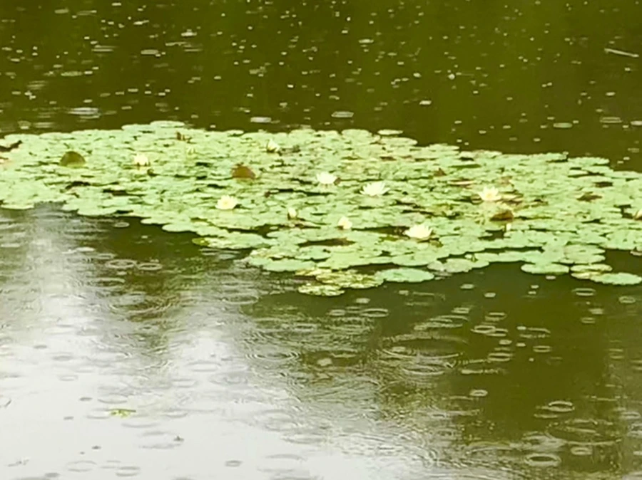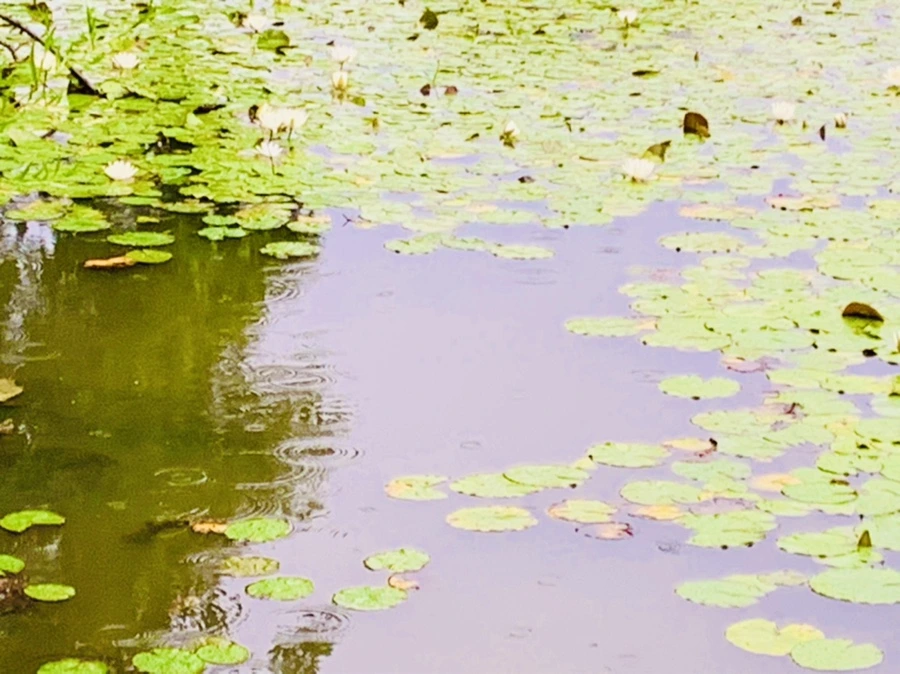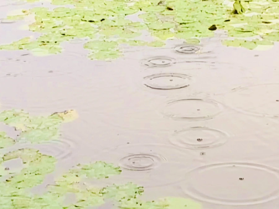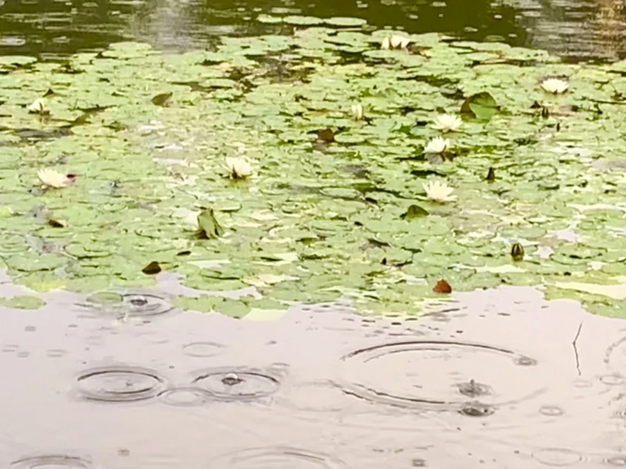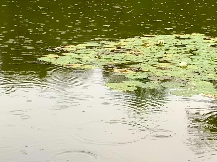 여름 비 내리는 연못을 보며