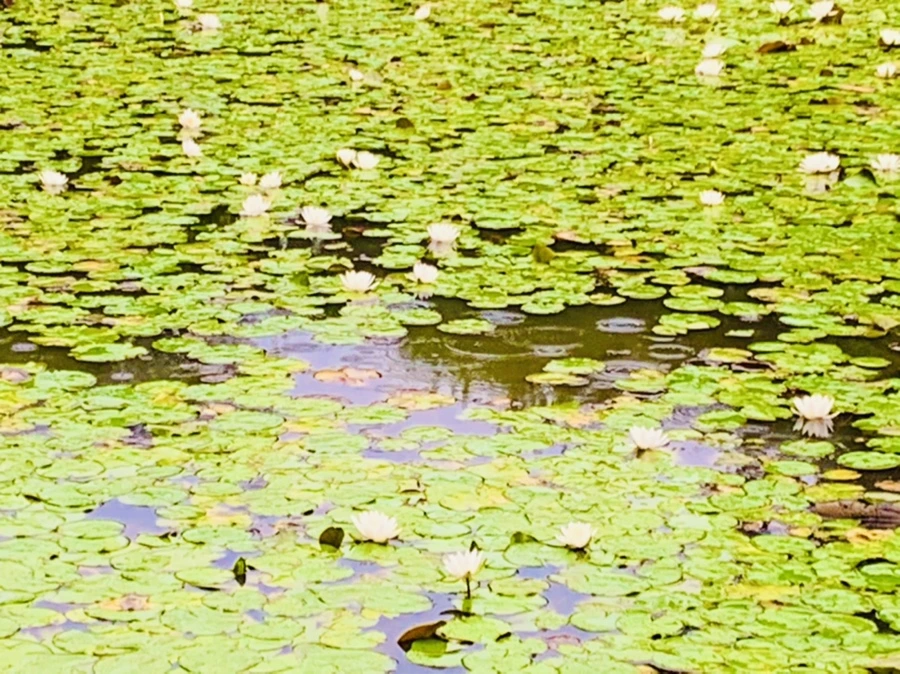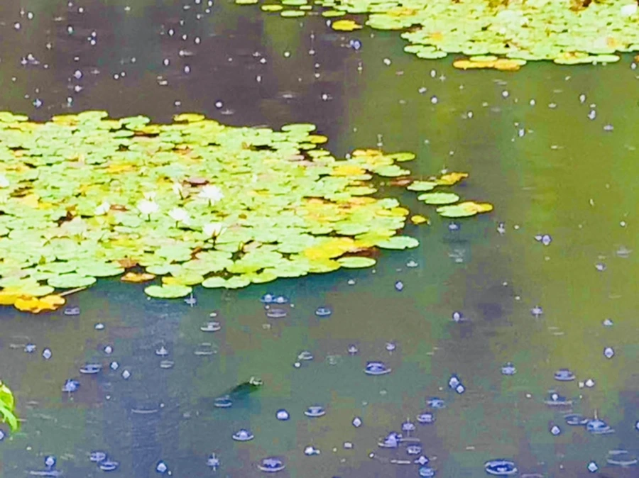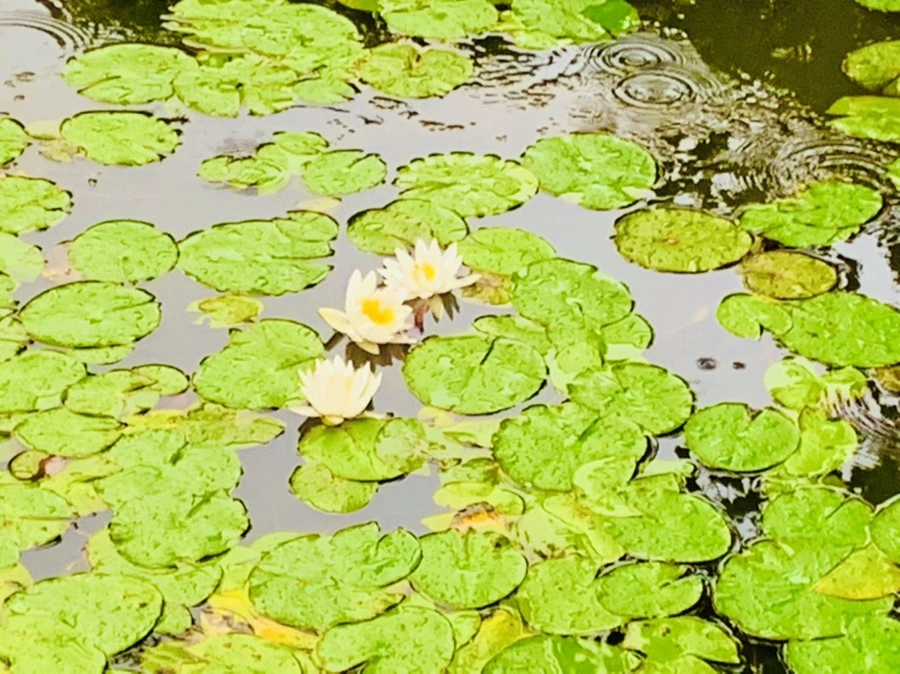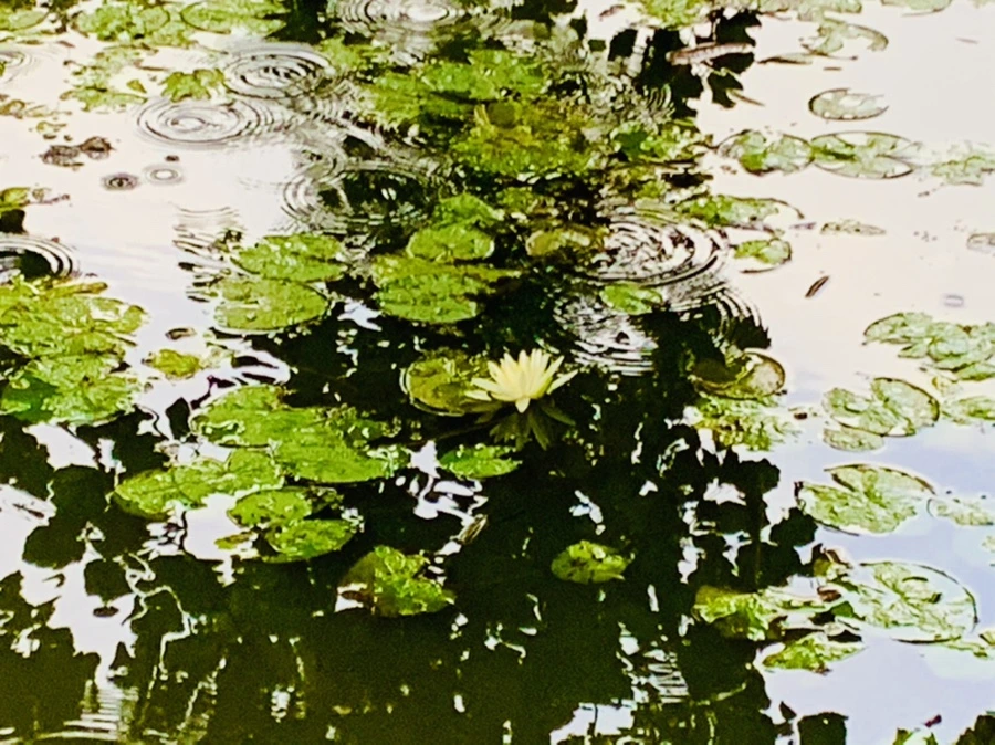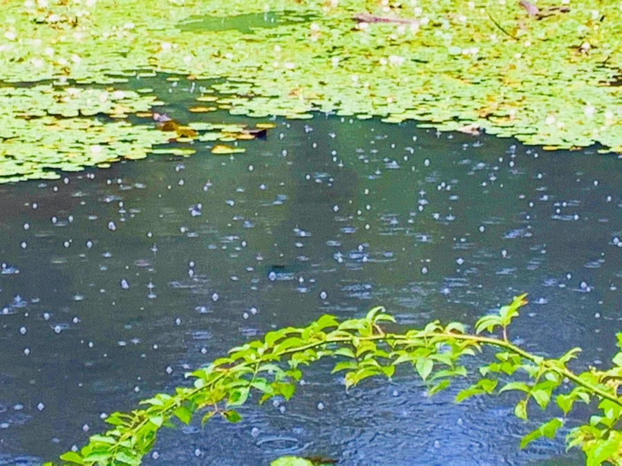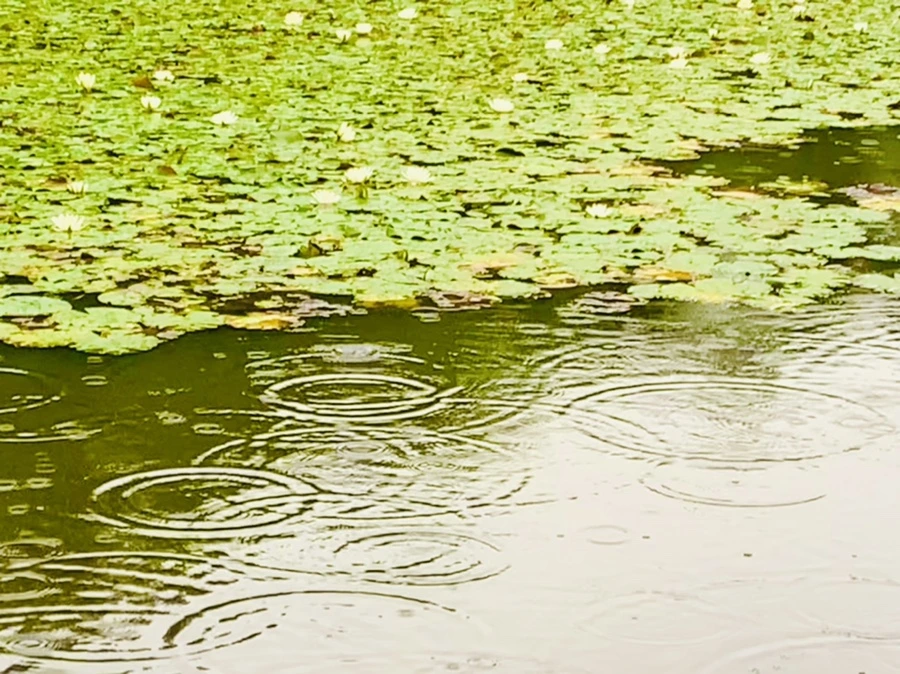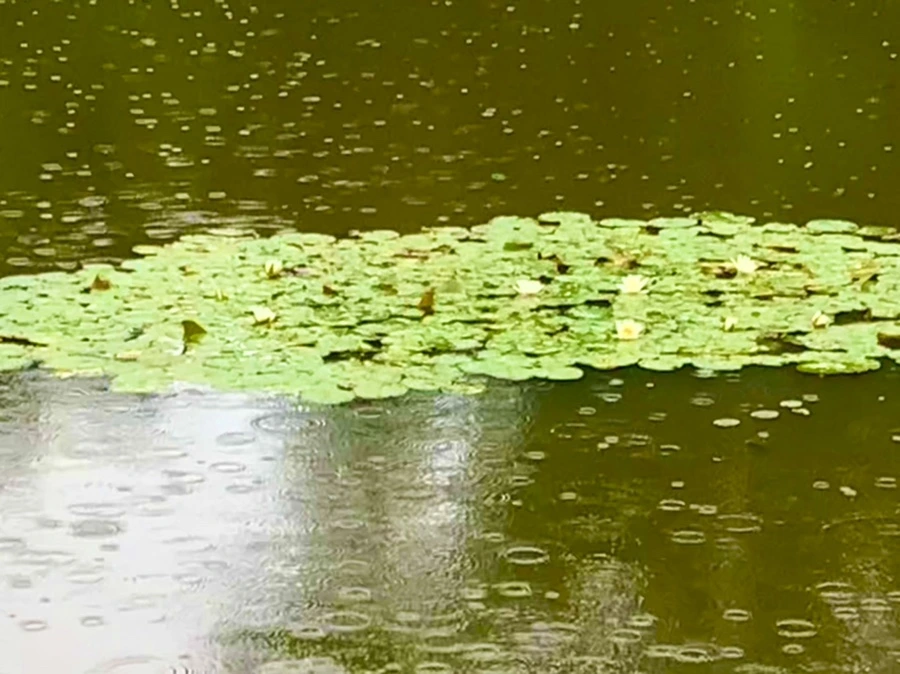 여름 비 내리는 연못을 보며