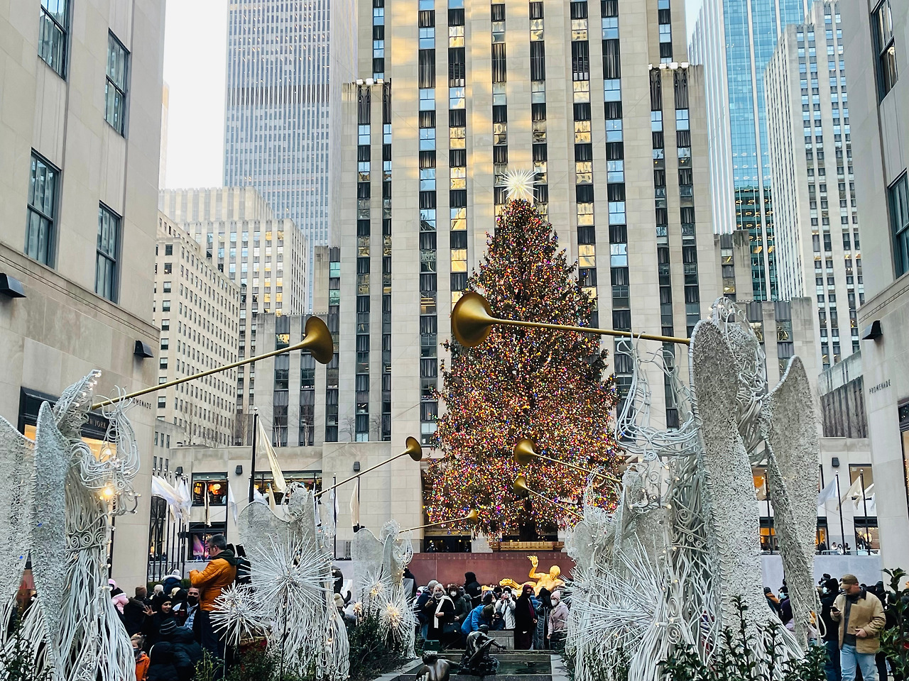 맨해튼 미드타운은 크리스마스 시즌이라 황금빛으로 반짝반짝거린다. 칠흑처럼 어두컴컴한 밤에 크리스마스 장식을 찍으면 더 멋질 텐데...