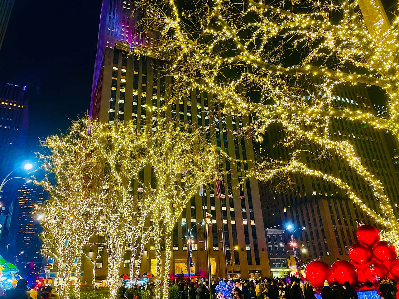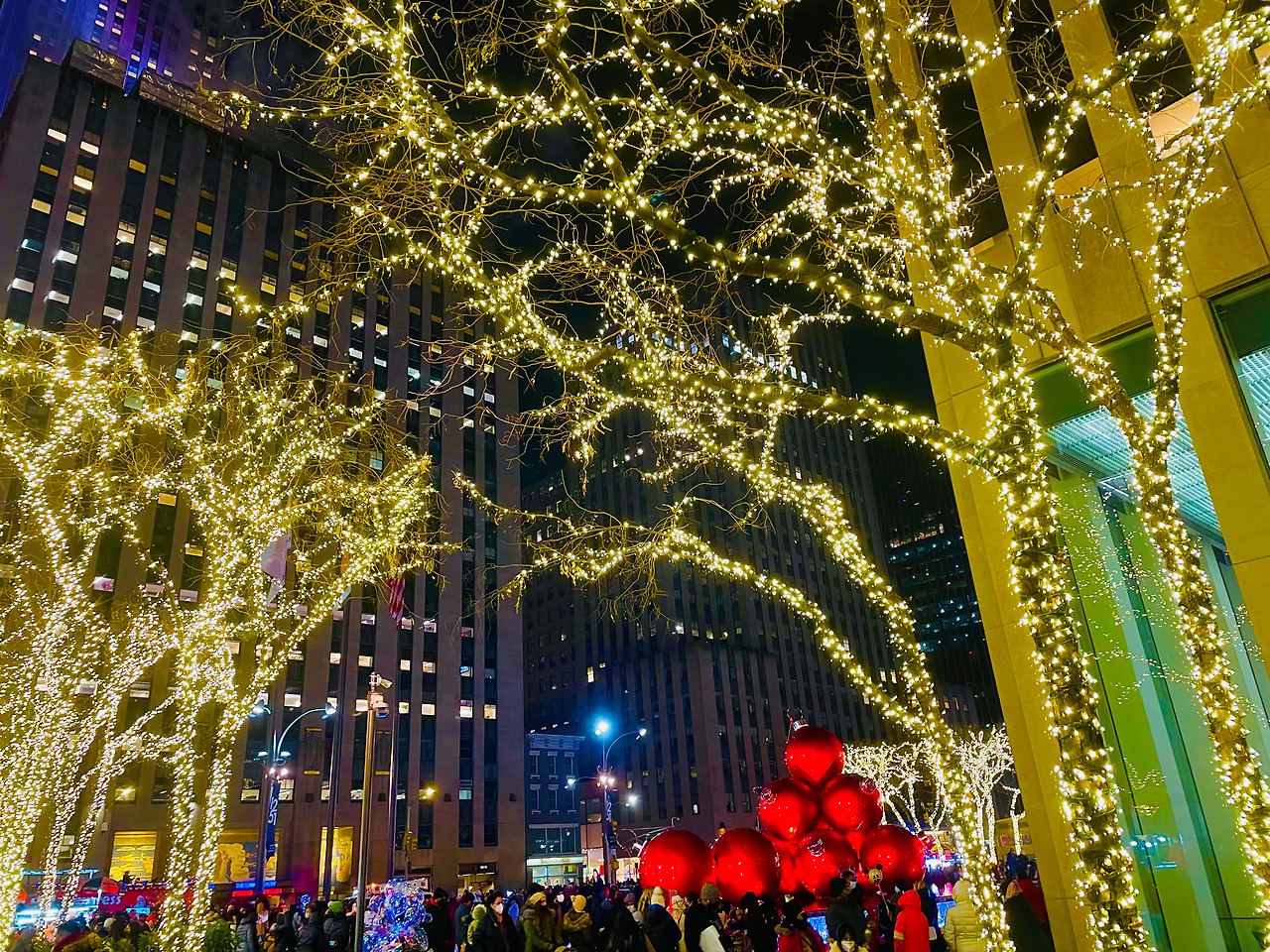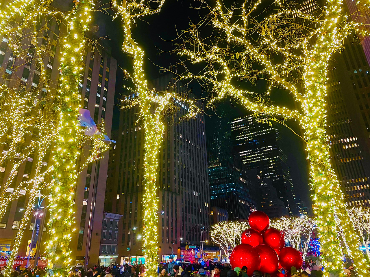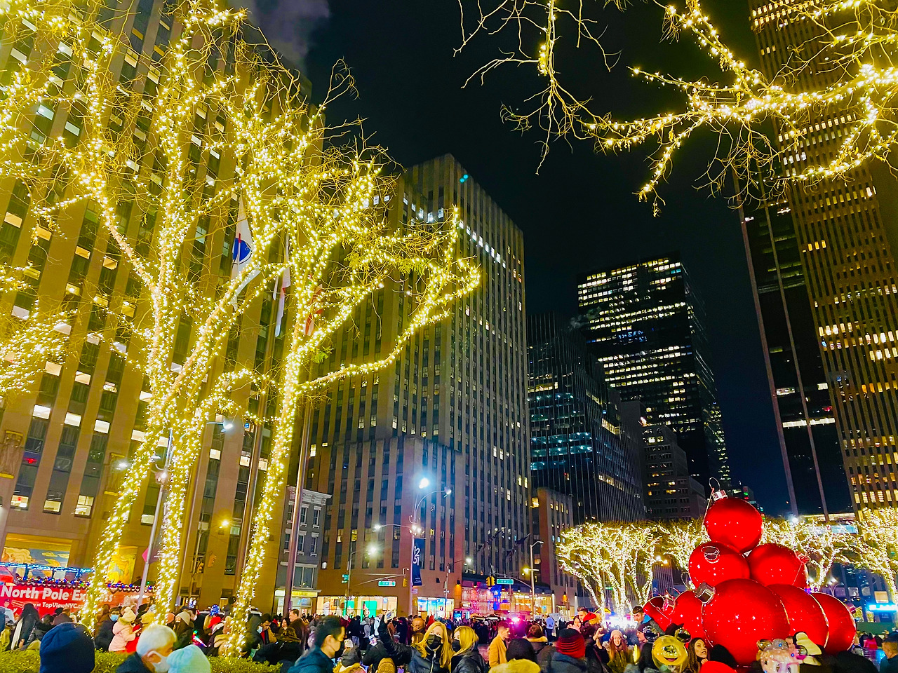 크리스마스 장식으로 화려한 뉴욕의 밤