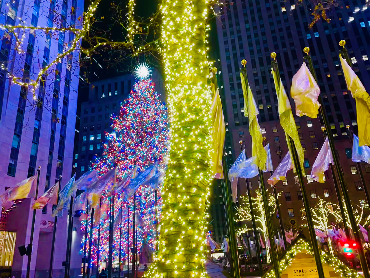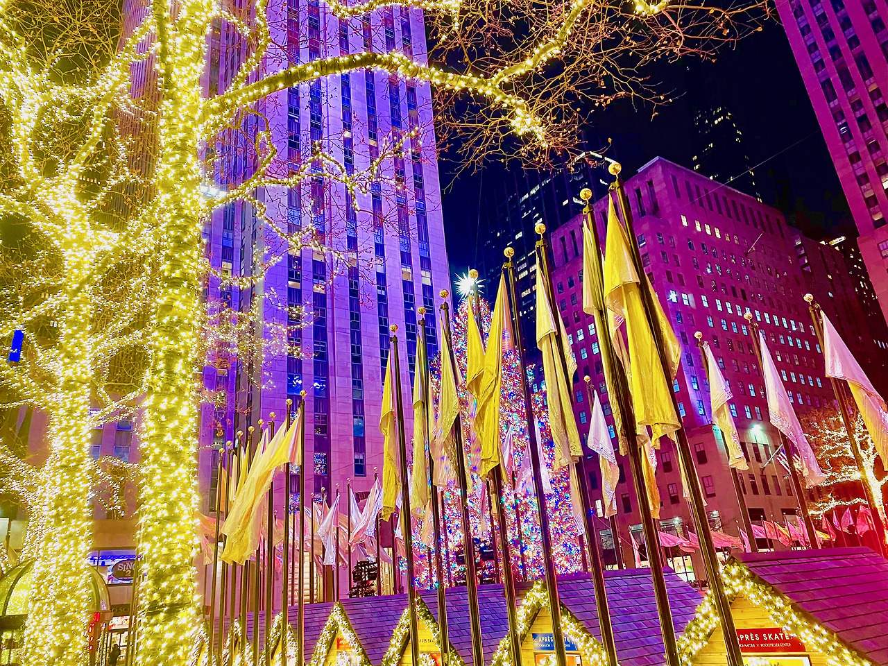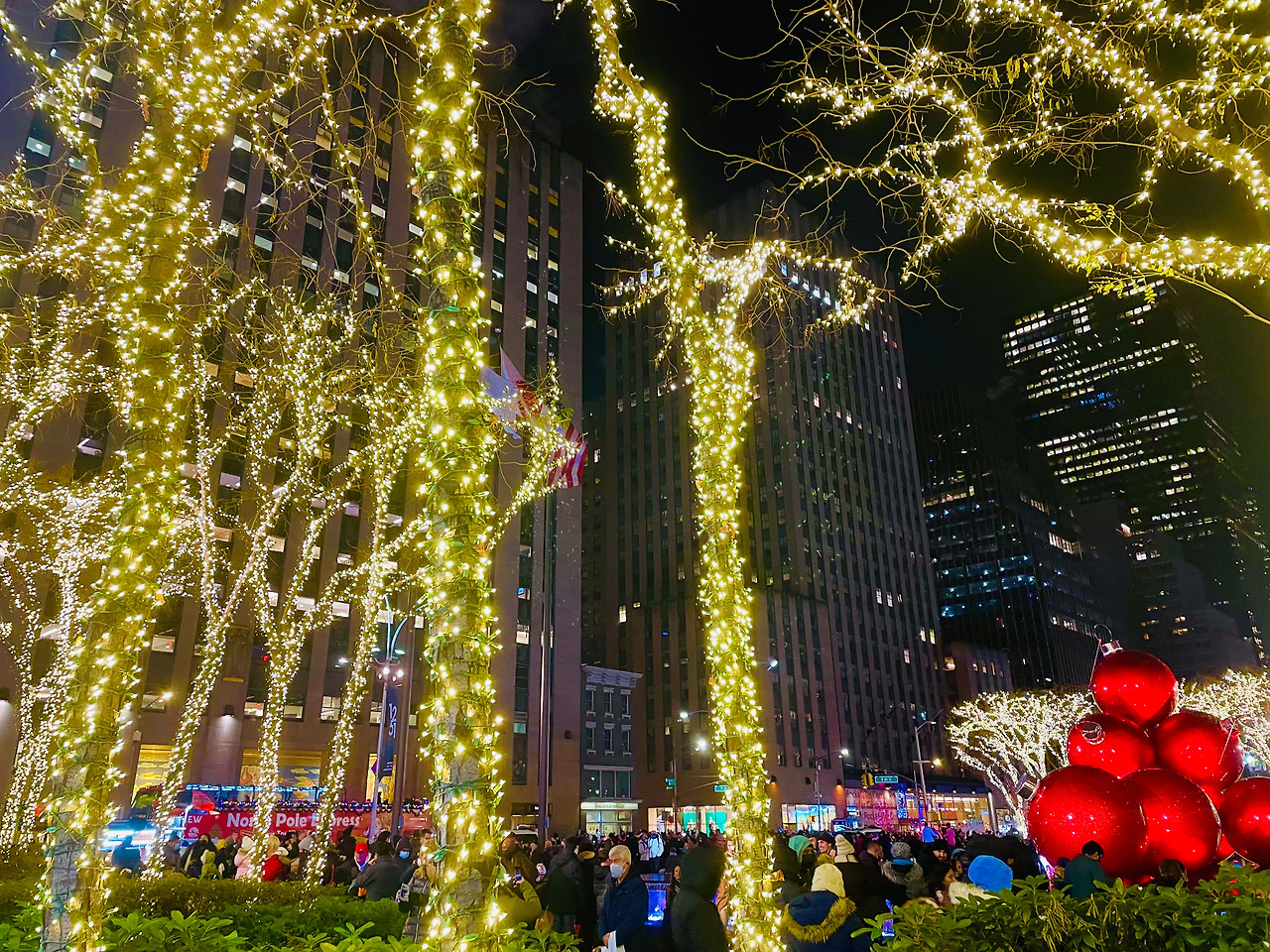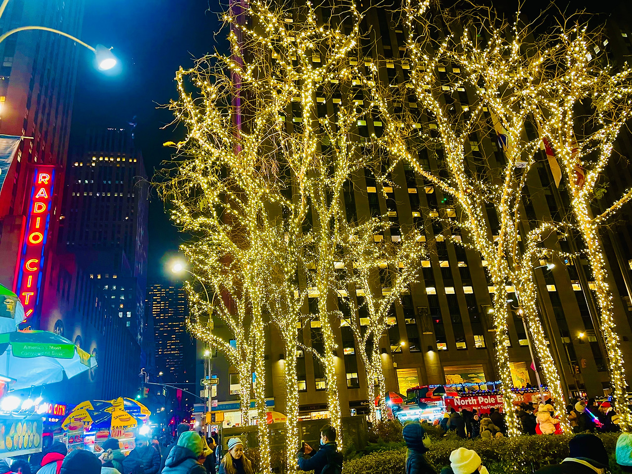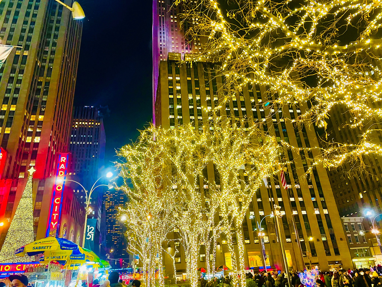 크리스마스 장식으로 화려한 뉴욕의 밤