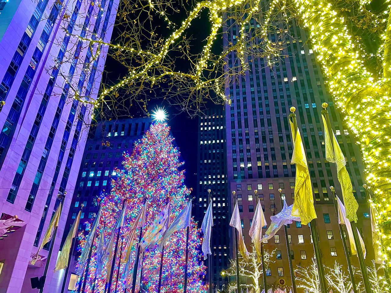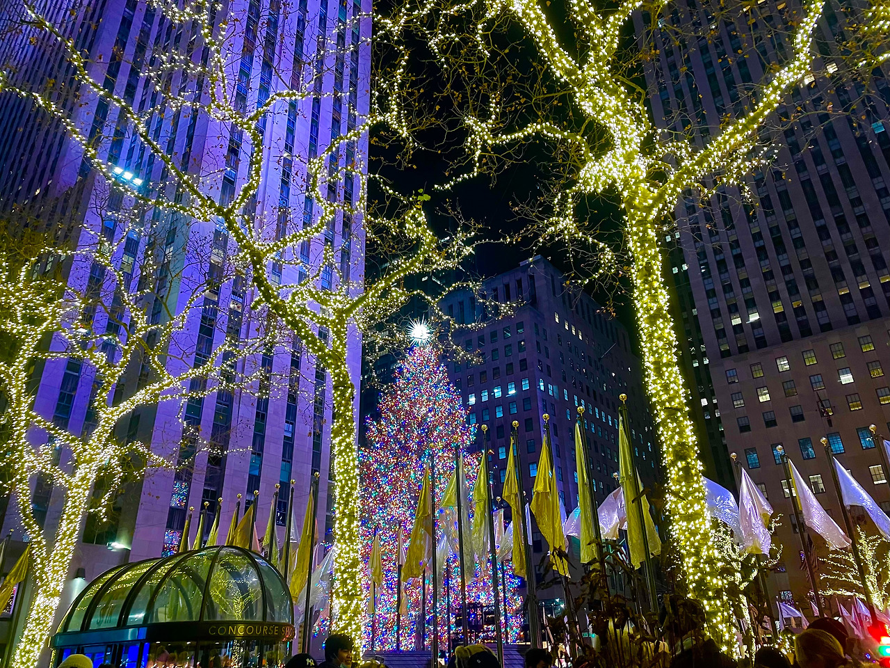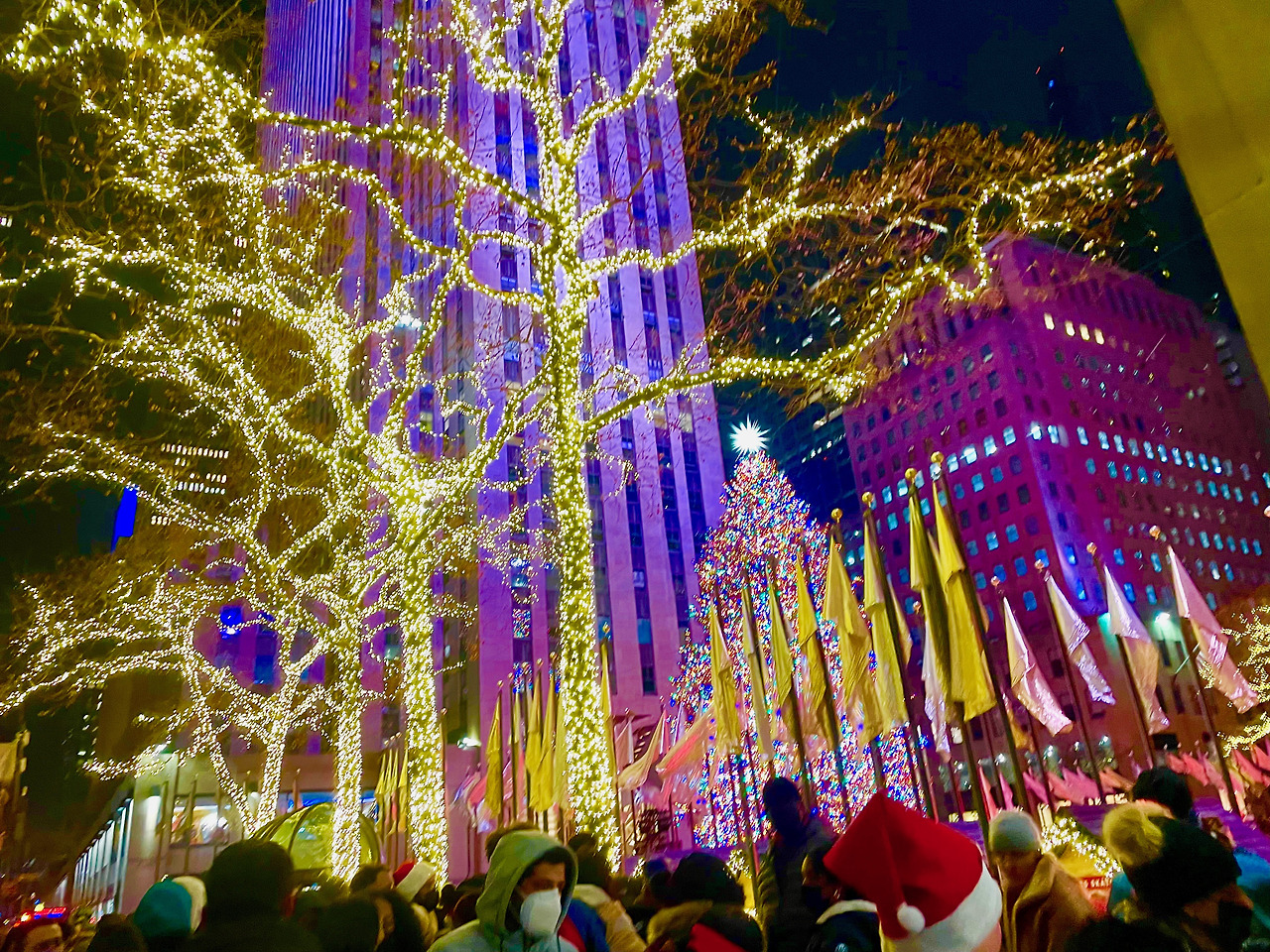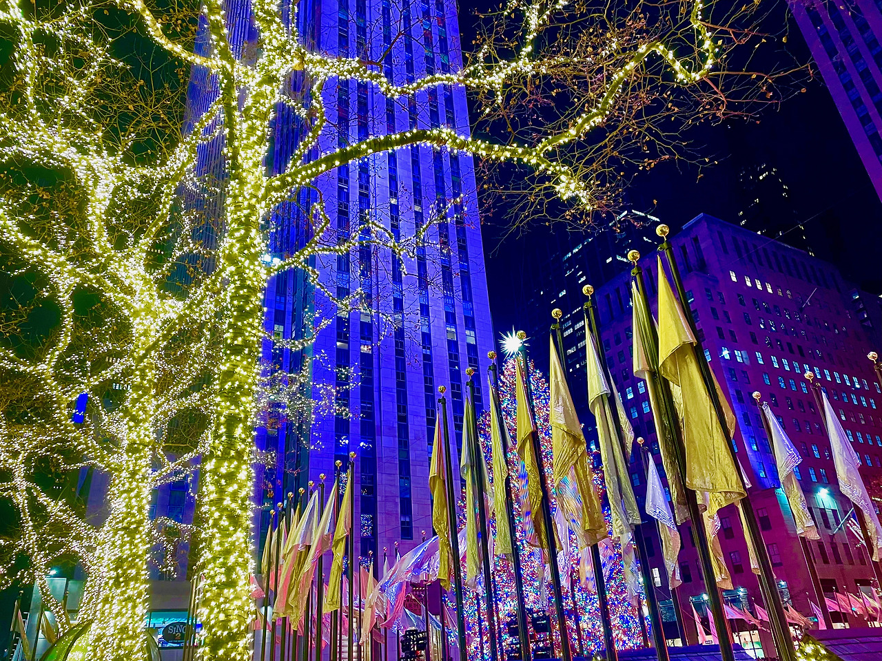 크리스마스 장식으로 화려한 뉴욕의 밤