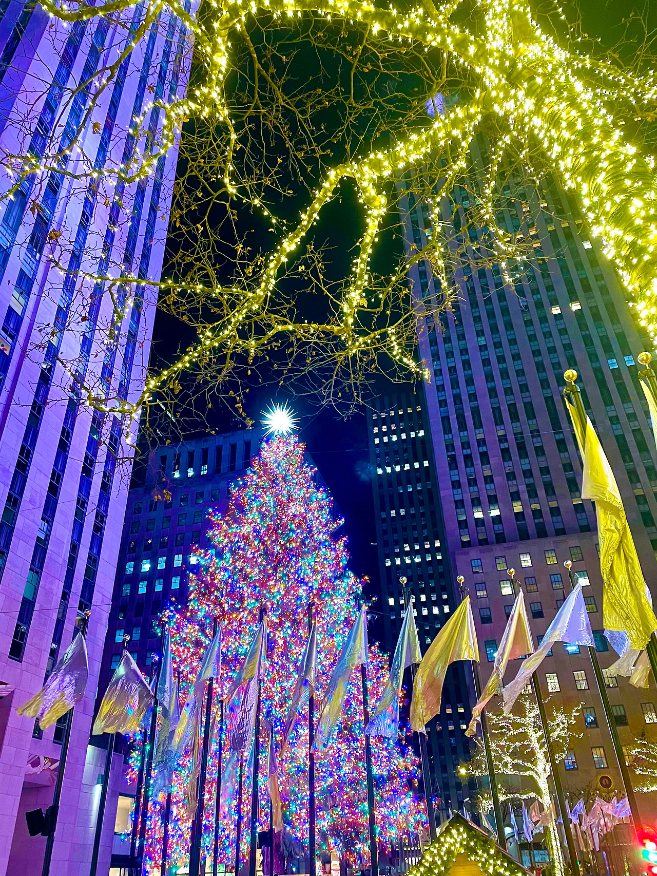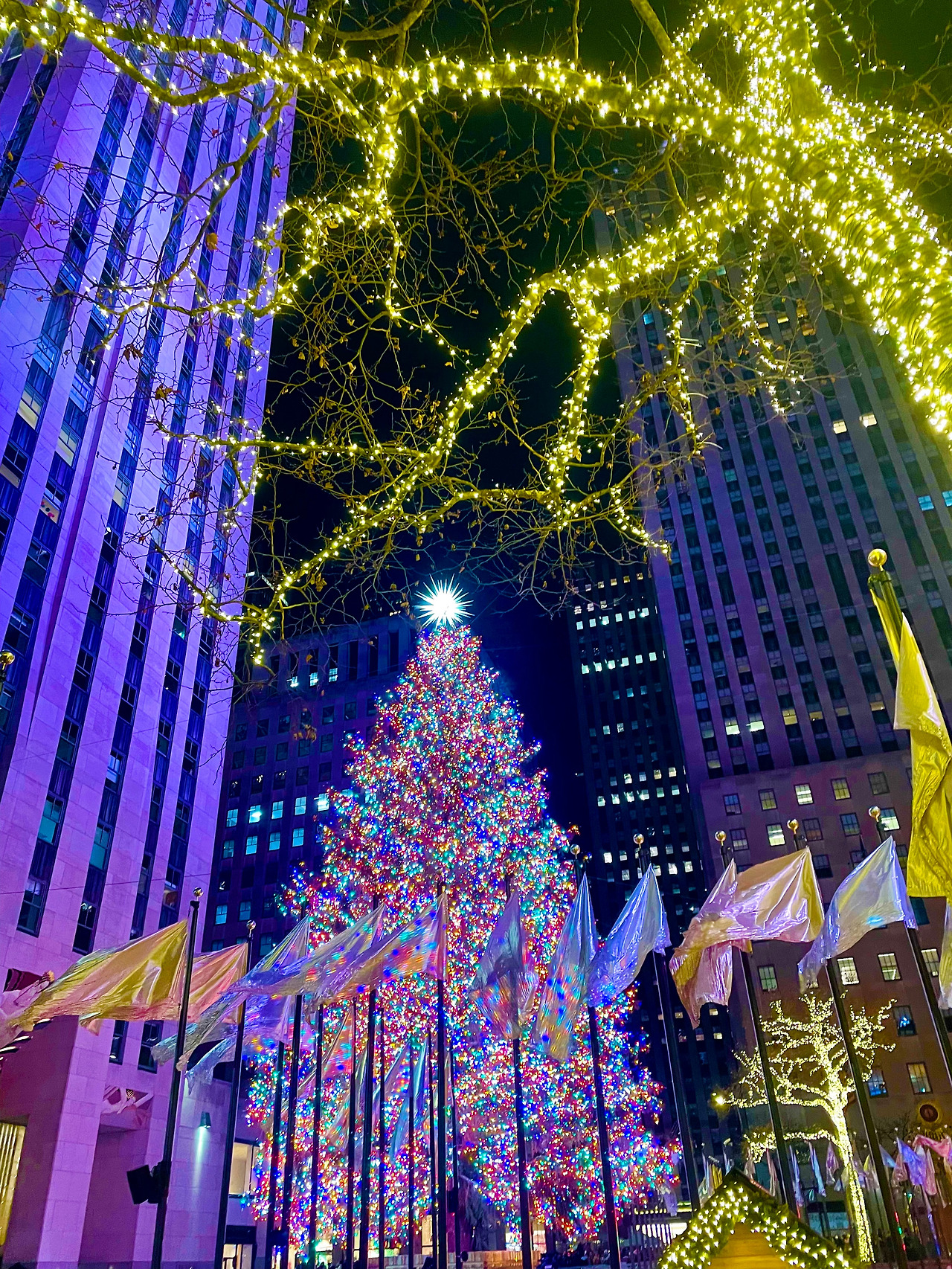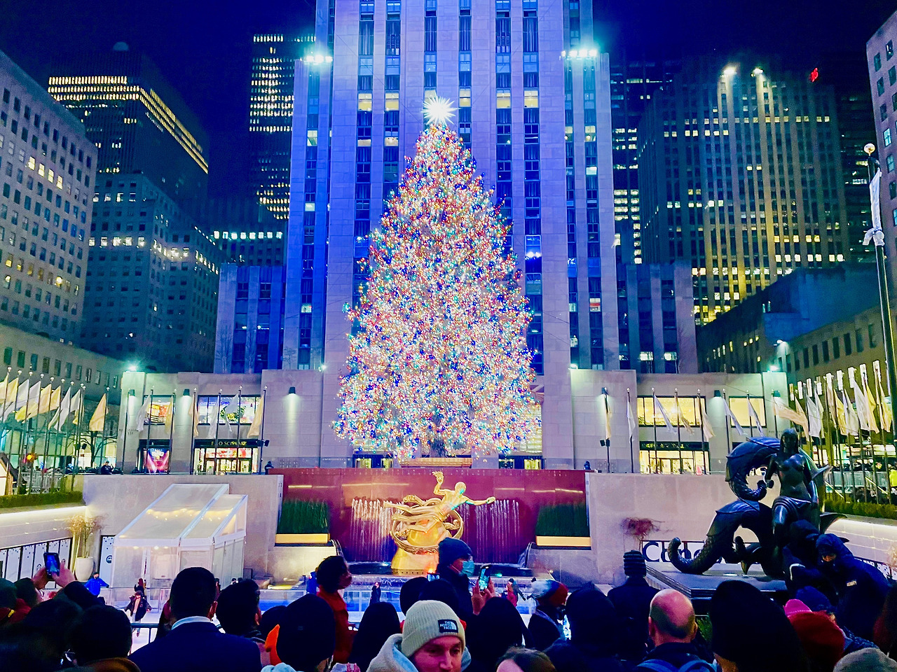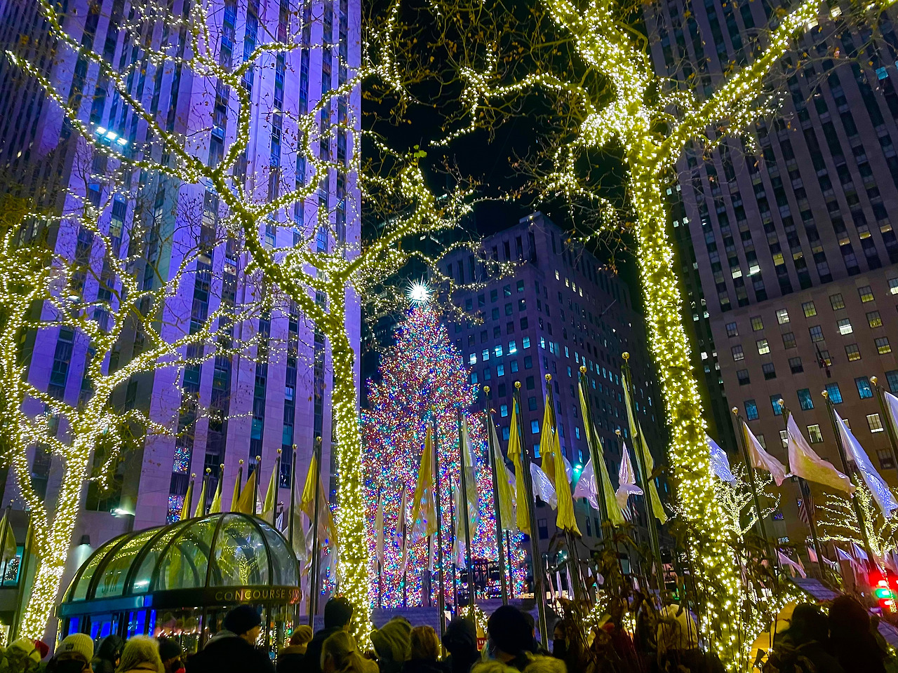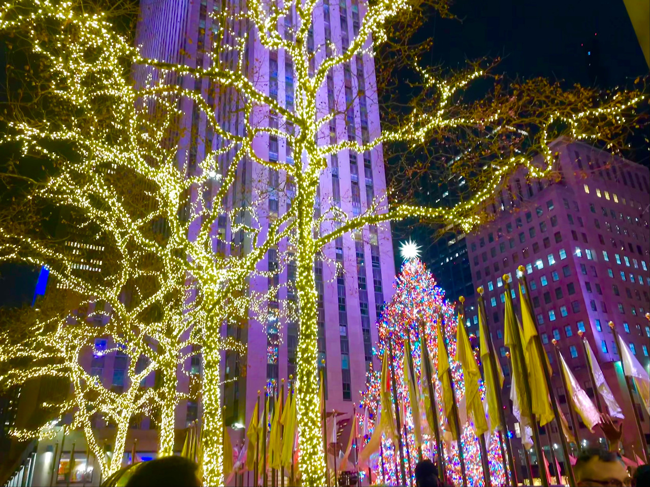 크리스마스 장식으로 화려한 뉴욕의 밤