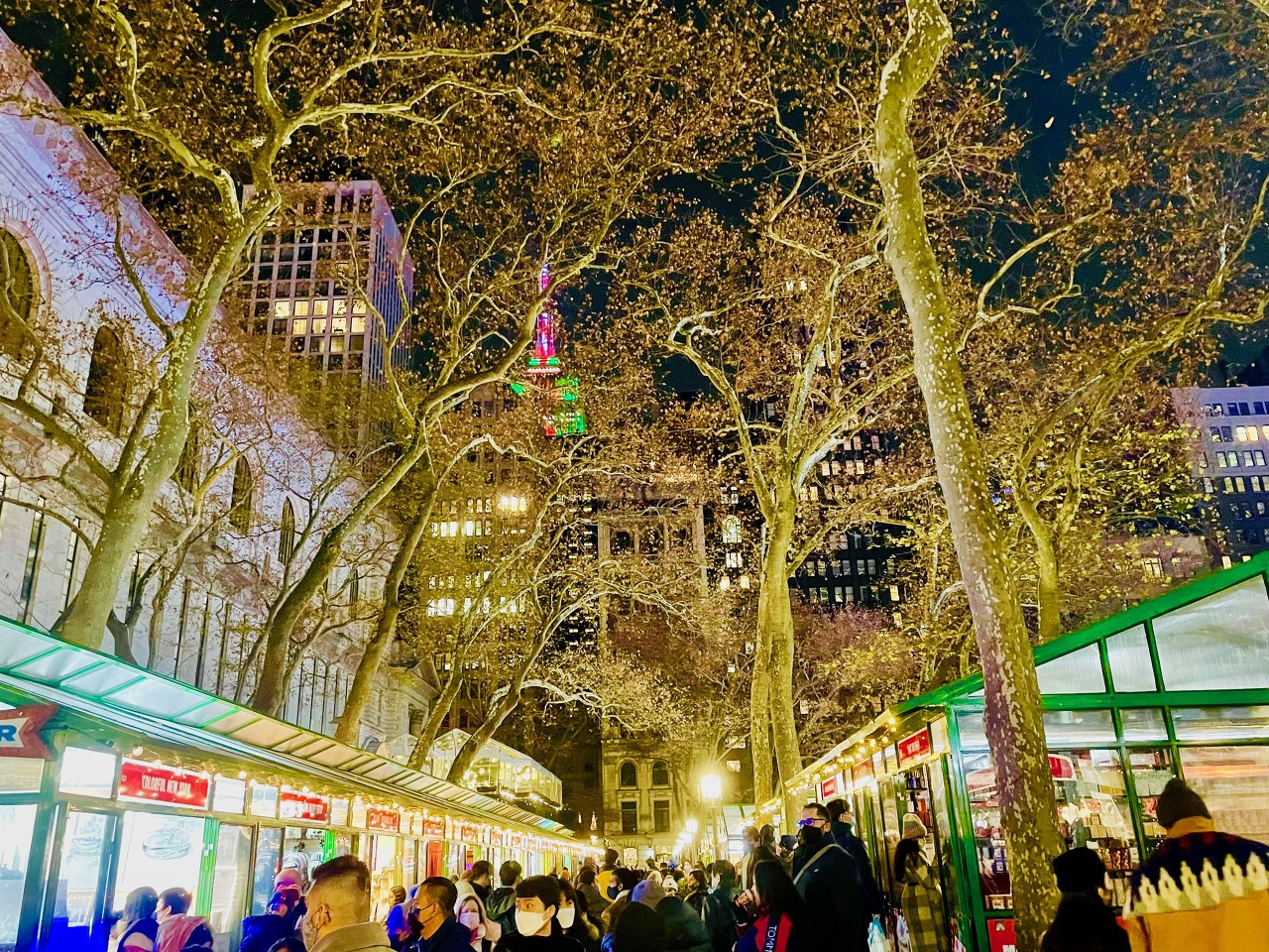 기차역 근처에 뉴욕의 상징 크라이슬러 빌딩이 있다. 뉴욕의 밤에 은빛으로 빛나는 크라이슬러 빌딩도 바라보며 브라이언트 파크를 향해 걸었다.