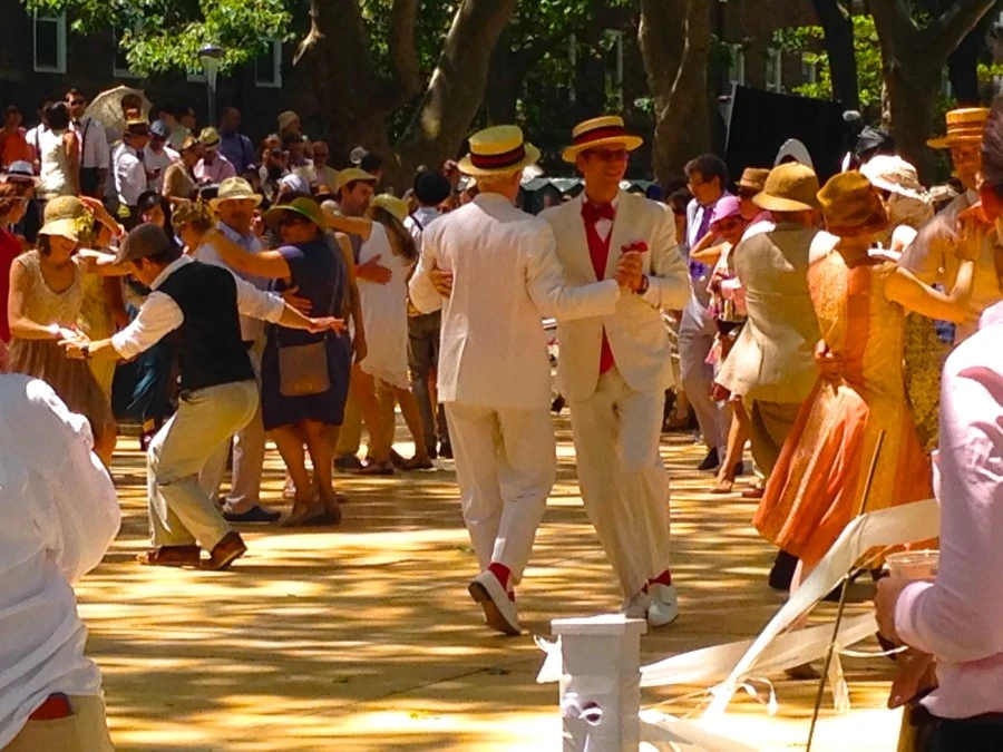최고의 여름 휴양지로 손꼽히는 거버너스 아일랜드는 점점 더 인기가 높아만 가고 방문객 숫자는 많아져 간 듯 보인다. 전시회를 보면서 공연을 보면서 아름다운 전망을 보면서 휴식을 취하는 섬에는 이탈리안 요리, 멕시코 요리 등 음식도 팔고 스타벅스 카페 등도 있어 음식을 준비해 가지 않아도 되고 일부는 음식을 가져와 잔디밭에 앉아서 먹는다. 잔디밭에서 여는 위대한 개츠비 시절을 떠올리게 하는 Jazz Lawn Party. 모든 걸 다 잊고 오로지 순간을 즐긴 듯 보인다. 무더운 여름에도 불구하고 멋진 드레스를 입고 멋진 모자를 쓰고 멋진 춤을 추는 그들을 보면 마치 영화 속 장면 같다. 밴드 음악도 정말 좋다. 초록 잔디밭은 파티장으로 변해. 친구와 연인들이 함께 즐거운 시간을 보내는 여름 축제. 너무나 행복한 연인들을 본다.