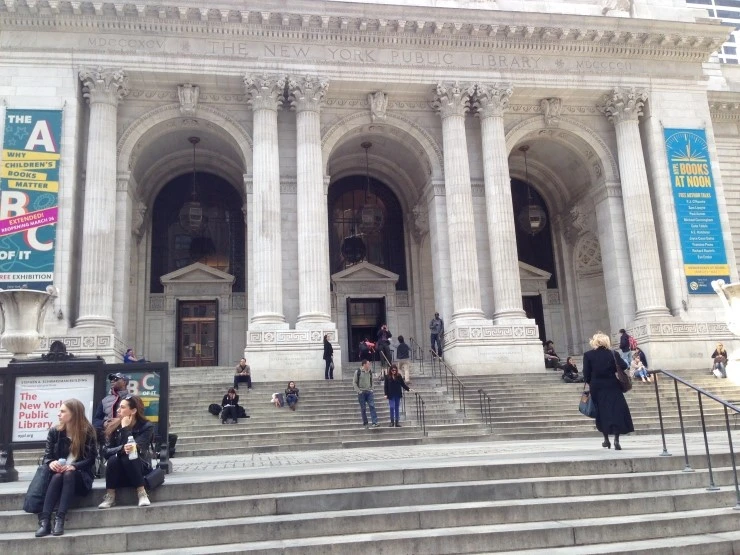 미드 타운 5번가에 위치한 뉴욕 공립 도서관은 세계 5개 도서관 중 하나며 미국에서는 워싱턴 국회 도서관 다음으로 규모가 크다. 하얀색 대리석 건물은 1911년 크로톤 저수지를 복개 한자리에 건설했다. 건축학적 미는 물론 희귀 본을 포함해 5천만 권이 넘는 소장 도서를 보유하고 있으며 특별 전시회 및 작가 이벤트와 제인 오스틴, 셰익스피어 소네트와 노벨 수상자 패트릭 모디아노 등 다양한 이벤트가 열리며 작가 이벤트에 브루클린 선셋 파크에서 지내는 폴 오스터도 참가했다. 도서관 내부도 무척 아름답고 아주 많은 뉴요커들과 관광객들의 사랑을 듬뿍 받는 뉴욕 명소다. 홀리데이 시즌 두 마리 사자상도 크리스마스 장식 화환을 쓰고 있어. 많은 사람들이 기념사진 촬영을 하는 뉴욕 명소에 속해. 언젠가 베를린에서 뉴욕에 온 교수를 뉴욕 영화제에서 만났는데 이렇게 멋진 도서관이 있다는 게 정말 놀랍다고 했지.