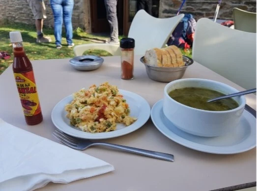 점심 무렵, 허기를 달래기 위해 'Aira do Camiño'라는 식당에 들어갔다. 그곳에서 나는 너무 반가운 소울푸드를 찾아냈다. 메뉴판에 적힌 갈리시아 전통 수프, '깔도 가예고(Caldo Gallego)'. 하얀 콩과 감자, 그리고 이곳에서 나는 순무 잎(Grelos)을 푹 삶아 낸 국물 요리다.