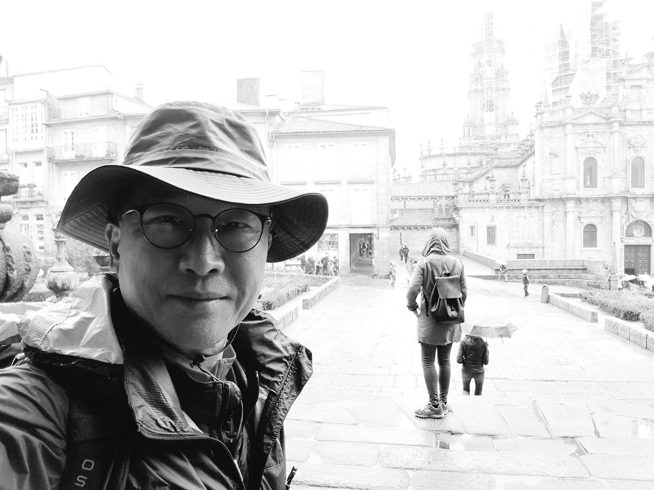 배낭을 바닥에 내려놓고 털썩 주저앉았다. 비에 젖은 바닥의 차가운 감촉보다, 가슴 밑바닥에서 솟구치는 뜨거운 무언가가 더 강렬했다. 빗물인지 눈물인지 모를 것이 볼을 타고 흘러내렸다. "해냈다." 발바닥의 물집, 작열하던 태양, 끝없는 고독, 그리고 스쳐 간 수많은 인연들. 그 모든 순간이 이 광장 위에 파노라마처럼 펼쳐졌다. 성당의 두 첨탑이 빗속에서 나를 내려다보며 "수고했다, 잘 왔다"라고 말해주는 듯했다.