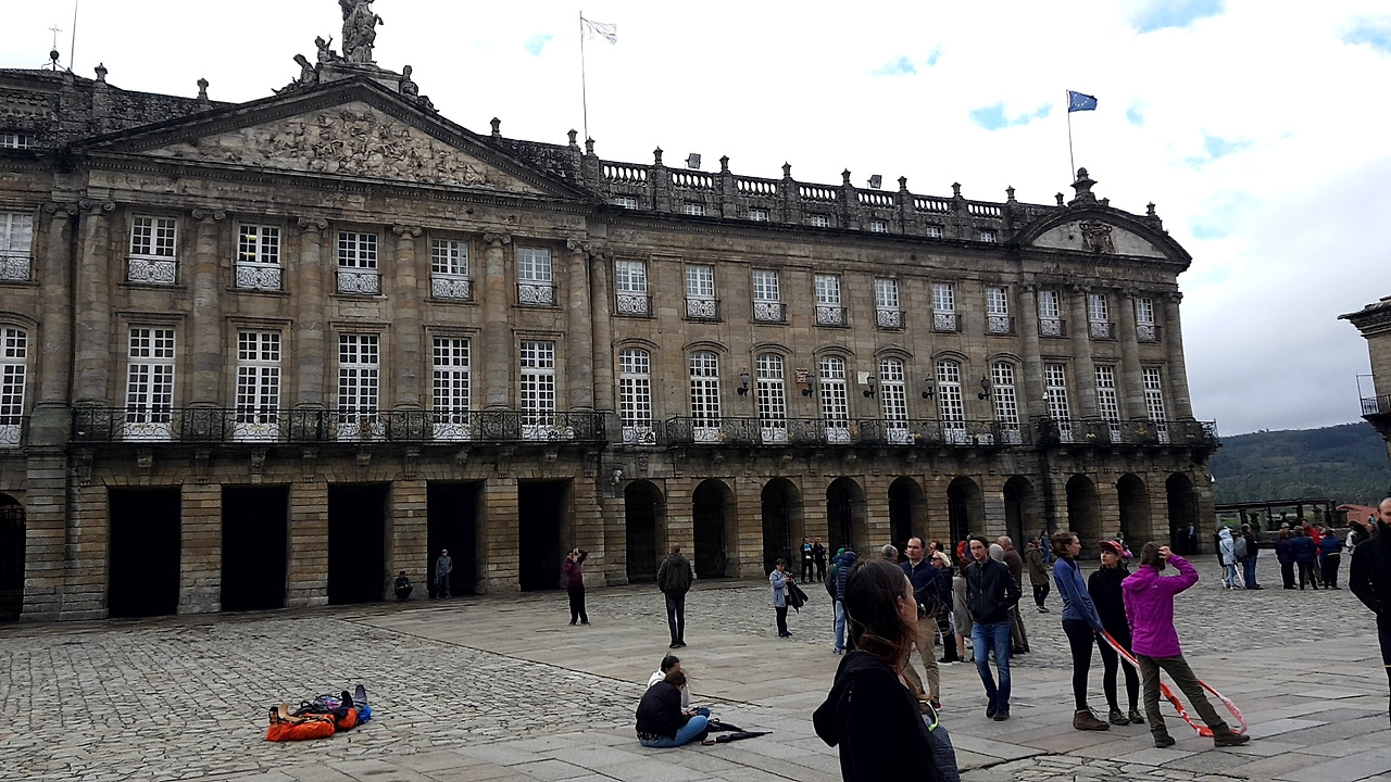 지루하고 힘들었던 도심을 지나 마지막 터널(아치)을 통과하자, 시야가 확 트이며 웅장한 산티아고 대성당이 그 위용을 드러냈다. 오브라도이로 광장이다. Km 0. 더 이상 나아갈 화살표가 없는 곳. 800km의 끝.