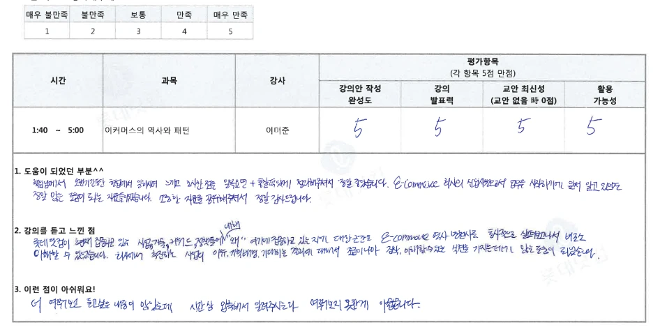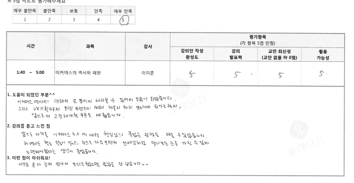 이커머스 역사에 대해서 큰 틀에서 바라볼 수 있어서 도움이 되었습니다. 그리고 UX기획자로서 최신 트렌드에 대해 게을 하지 않아야된다는 것과, 앞으로의 고민해야할 부분을 배웠습니다.