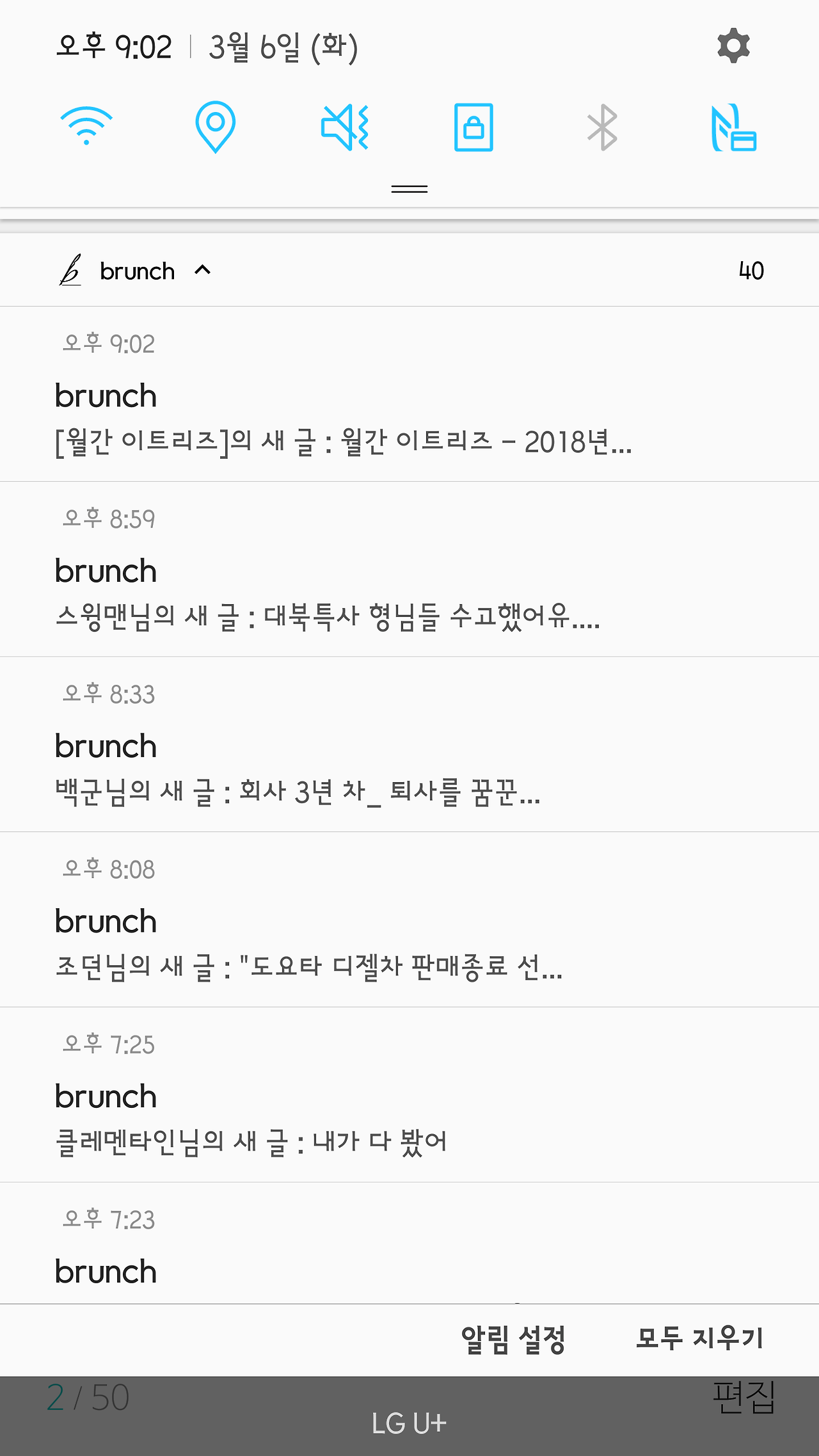 2) 안드로이드 드로우바에서 브런치에서 온 Push를 터치한다