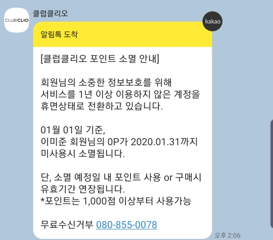 아마도 포인트가 휴면회원처리로 사라지게 된다고 하면 고객이 한번이라도 방문해서 휴면회원처리에서 제외되지 않을까 했을 것이다.