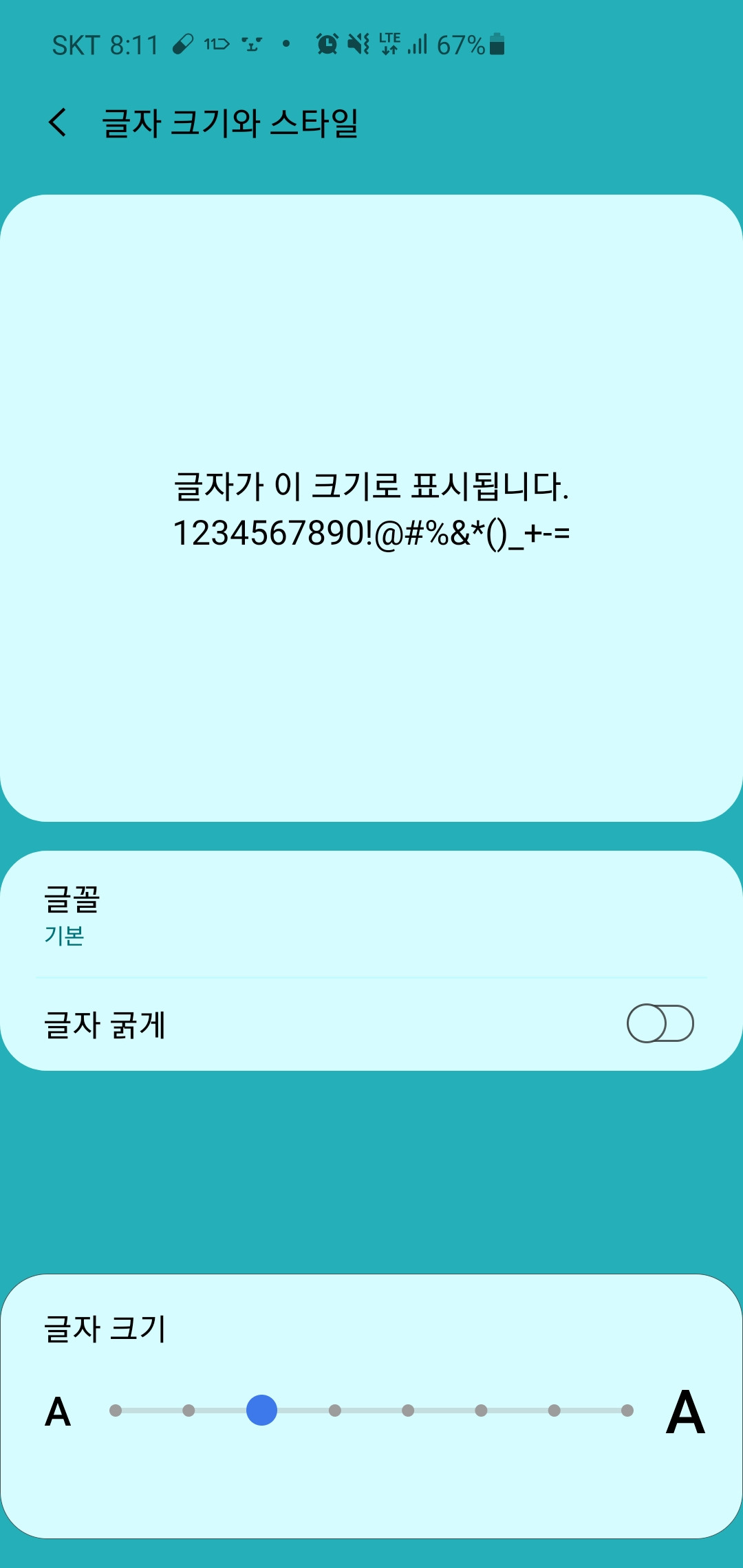 위에처럼 디바이스 기본폰트나 사이즈를 바꾸면 웹폰트가 적용되어 고정되지 않은 경우, 프로덕트의 형태에 영향을 미친다는 점이다.글씨자수 같은 것으로 화면을 고정해놓은 경우 글자크기나 자평이 달라지면 영향을 받는다. 가장 안전한 방법은 웹이고 앱이고 명확한 폰트를 아예 고정시키는 방법이다.