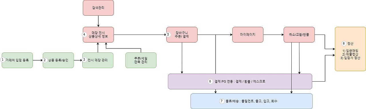 주문, 결제, 배송, 포인트 등 많은 부분은 법적인 부분과 시스템적인 부분에 대한 설계가 선행되어야 하죠.